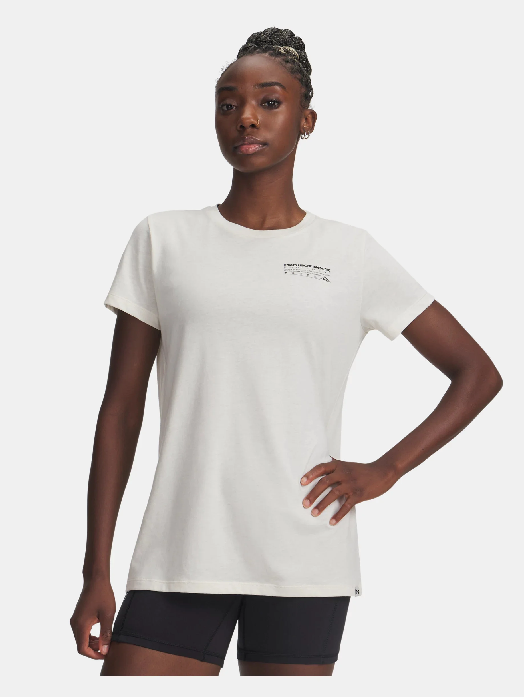 Project Rock training gear was built for the hardest workers in the room.This graphic T is comfortable, dries quick, and makes a statement with outdoor-inspired graphics. Product Details - Super-soft, cotton-blend fabric provides all-day comfort - Ribbed collar - Main body fabric contains at least 40% recycled polyester, excluding trims & embellishments Size & Fit - Fuller cut for complete comfort. Space & Care - Style #: 6005083 - 60% Cotton/40% Polyester - Imported