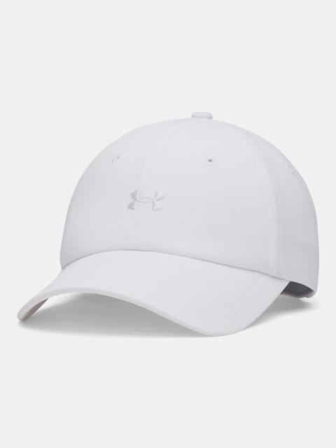 It doesn't just keep the sun off—the satin sweatband feels great and also helps reduce hair breakage. Product Details - UA Low: Classic low-profile baseball cap with unstructured front panel—maintains contact with head - Breathable knit fabric is super-soft for all day comfort - Satin sweatband helps reduce friction, irritation & hair breakage - Thinner, adjustable webbing strap closure - Larger back opening for multiple ways to wear your hair - Main body fabric contains at least 90% recycled polyester, excluding trims & embellishments Size & Fit - Unstructured Space & Care - Style #: 6009335 - Updated, smaller embroidered logo - 100% Polyester - Imported