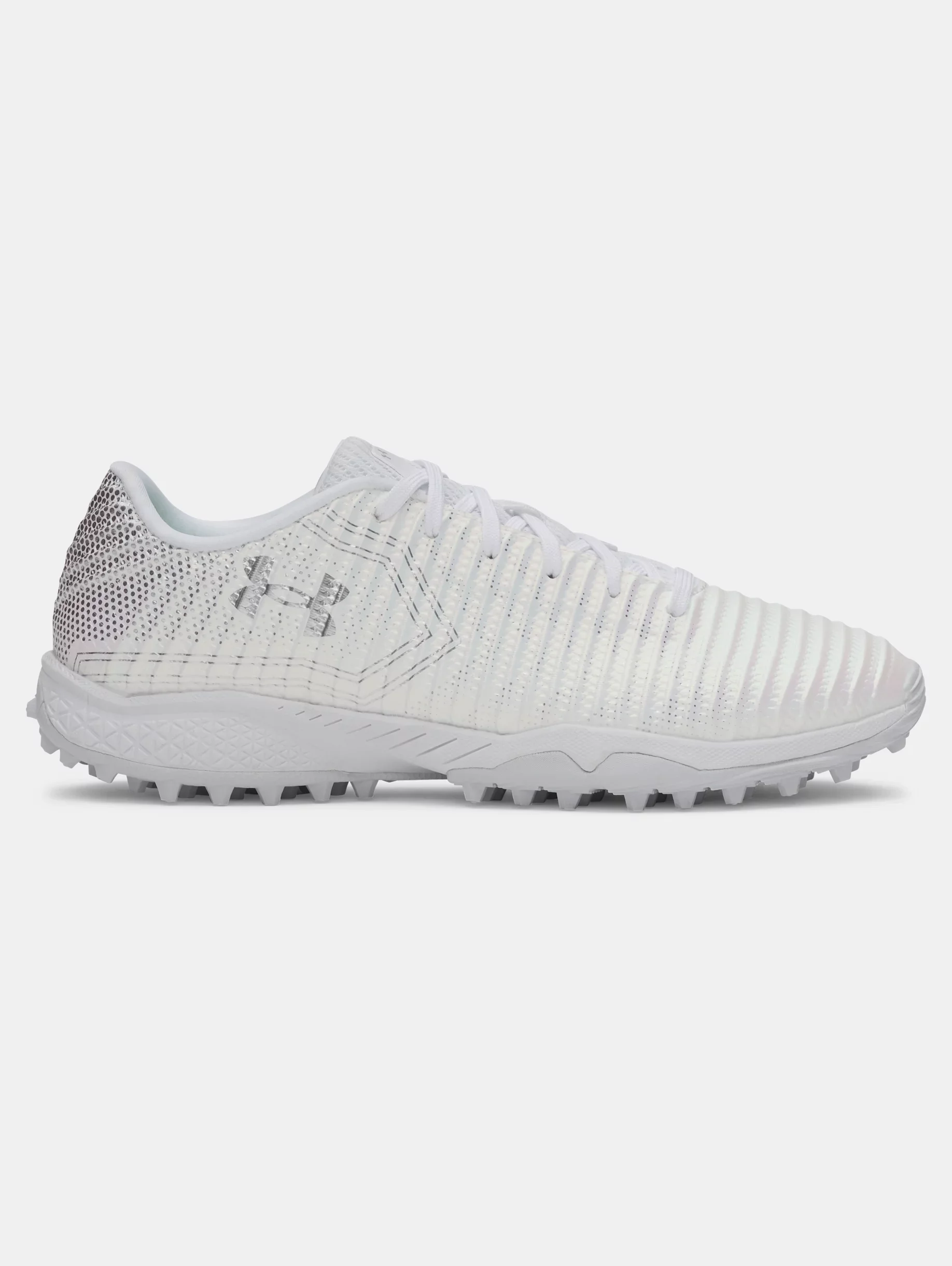 Low-cut lacrosse shoes built for competing on turf.The IntelliKnit upper gives you a locked-in feel with flexible stability for your most intense moves. Product Details - UA IntelliKnit upper is breathable & provides premium stretch & compression where you need it - TPU skin provides minimalistic structure & protection where you need it - Rubber outsole with mini-lugs for incredible grip & traction on artificial turf & dry natural fields Size & Fit - Regular Space & Care - Style #: 6006432 - Weight: - Lace type: Standard tie - Imported