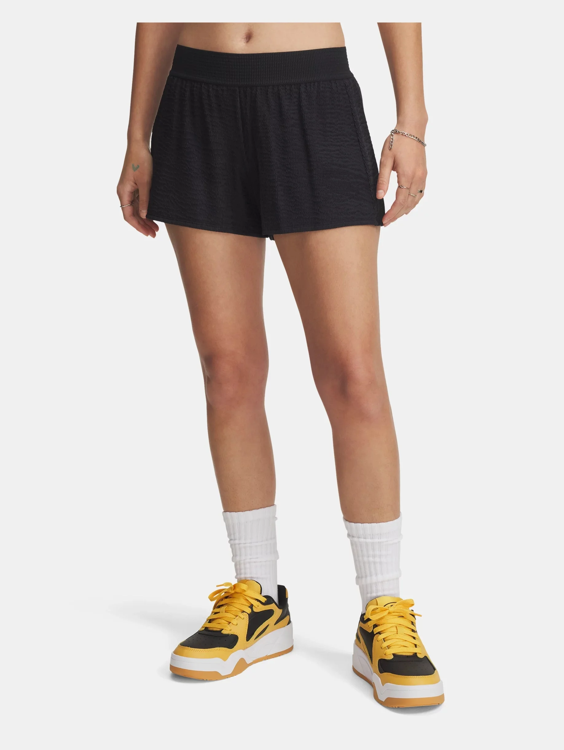 We reimagined the fundamentals of athletic gear—mesh, satin, shine—to bring you an elevated collection of standout off-court styles inspired by the premium feel of classic sportswear. Product Details - Soft, lux tricot knit material with crinkle rib texture for an elevated look & feel - 4-way stretch material moves better in every direction - Encased elastic waistband - Loose, flowy fit for comfort & style Size & Fit - Fuller cut for complete comfort. Space & Care - Style #: 6000301 - Discreet, raised embroidered logo - Inseam: 3" - Pockets: No - 91% Nylon/9% Elastane - Imported