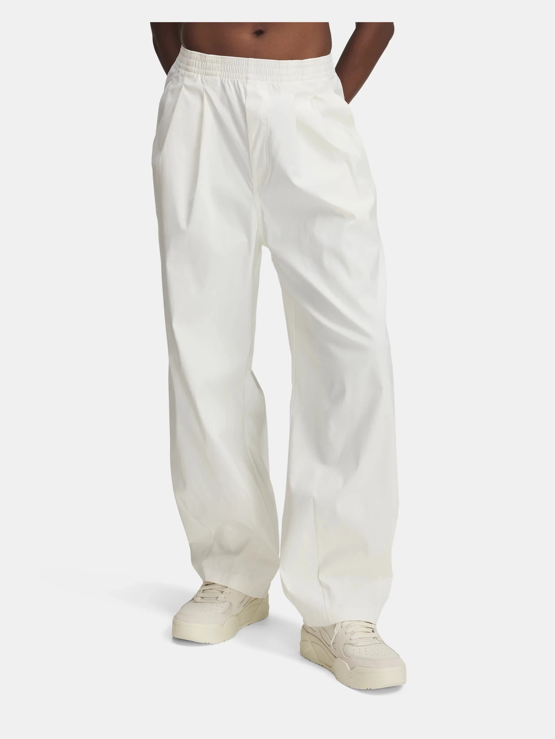 We reimagined the fundamentals of athletic gear—mesh, satin, shine—to bring you an elevated collection of standout off-court styles inspired by the premium feel of classic sportswear. Product Details - Lightweight woven material is super durable & comfortable - Encased elastic, pleated waistband - Open hand pockets & back pockets - Roomy fit with barrel-style look Size & Fit - Fuller cut for complete comfort. Space & Care - Style #: 6000306 - Discreet, raised embroidered logo - Inseam: 28" - Pockets: Yes - 95% Nylon/5% Elastane - Imported