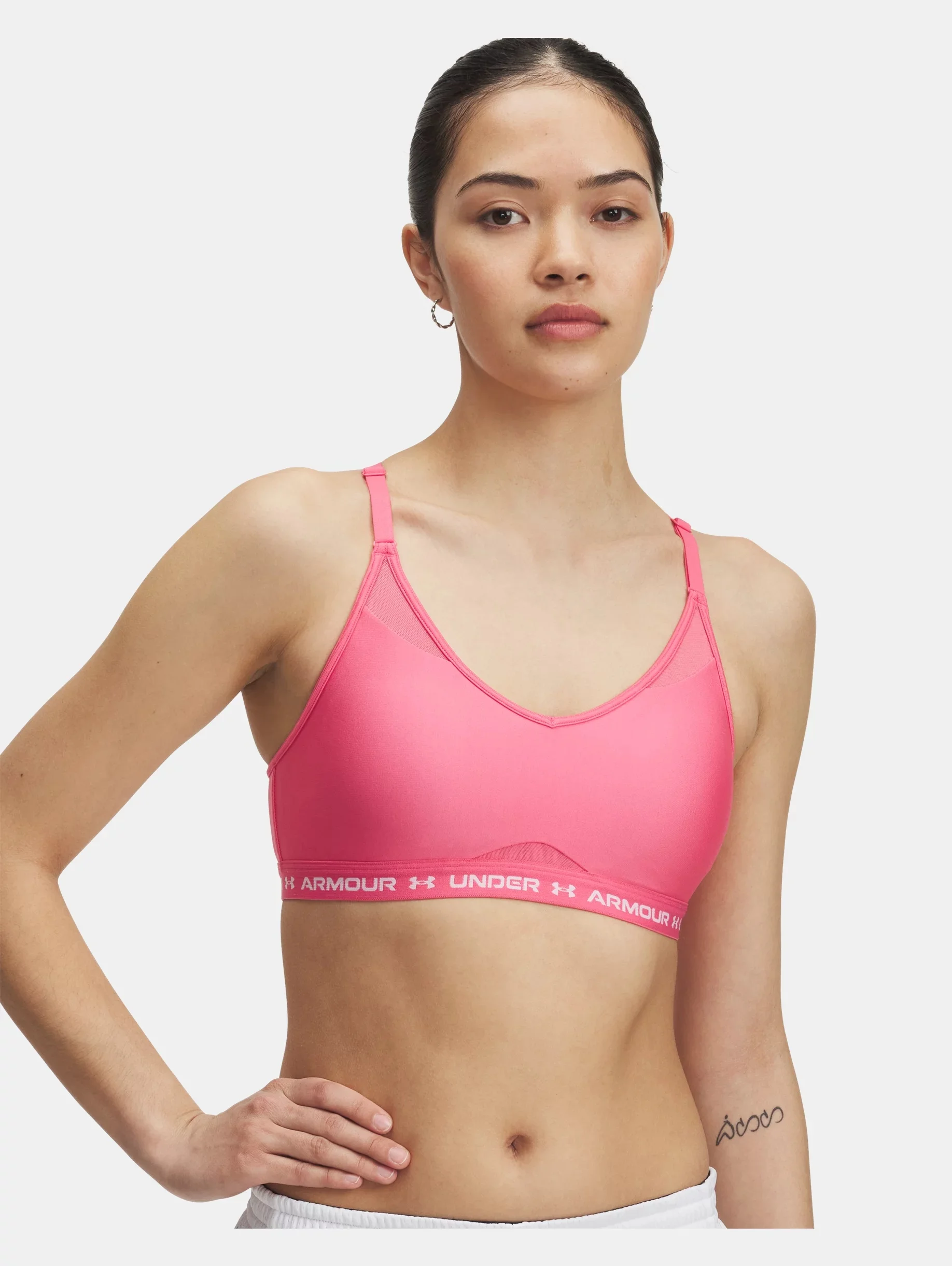 Unique crossback strap design delivers extra support in all the right places but still staying incredibly comfortable. Product Details - Built for Light-Support activity & all-day comfort - Removable cups for enhanced shape & coverage - Mesh panels at front neckline & lower bust for added breathability - Quick & easy adjusts on front of straps for a custom fit - Deep V neckline & exposed elastic bottom band with wordmark detail - HeatGear® fabric delivers superior next-to-skin feel, wicks sweat & dries really fast - Odor control technology minimizes odor - UPDATED SIZING: We revamped our bra sizing so you can find a fit that feels custom to your unique shape—check the size chart to find your perfect match Size & Fit - Ultra-tight, second-skin fit. Space & Care - Style #: 1386424 - 87% Polyester/13% Elastane - Imported - Remove pads before washing - Machine wash cold with like colors - Do not bleach - Tumble dry low - Do not iron - Do not use softeners - Do not dry clean