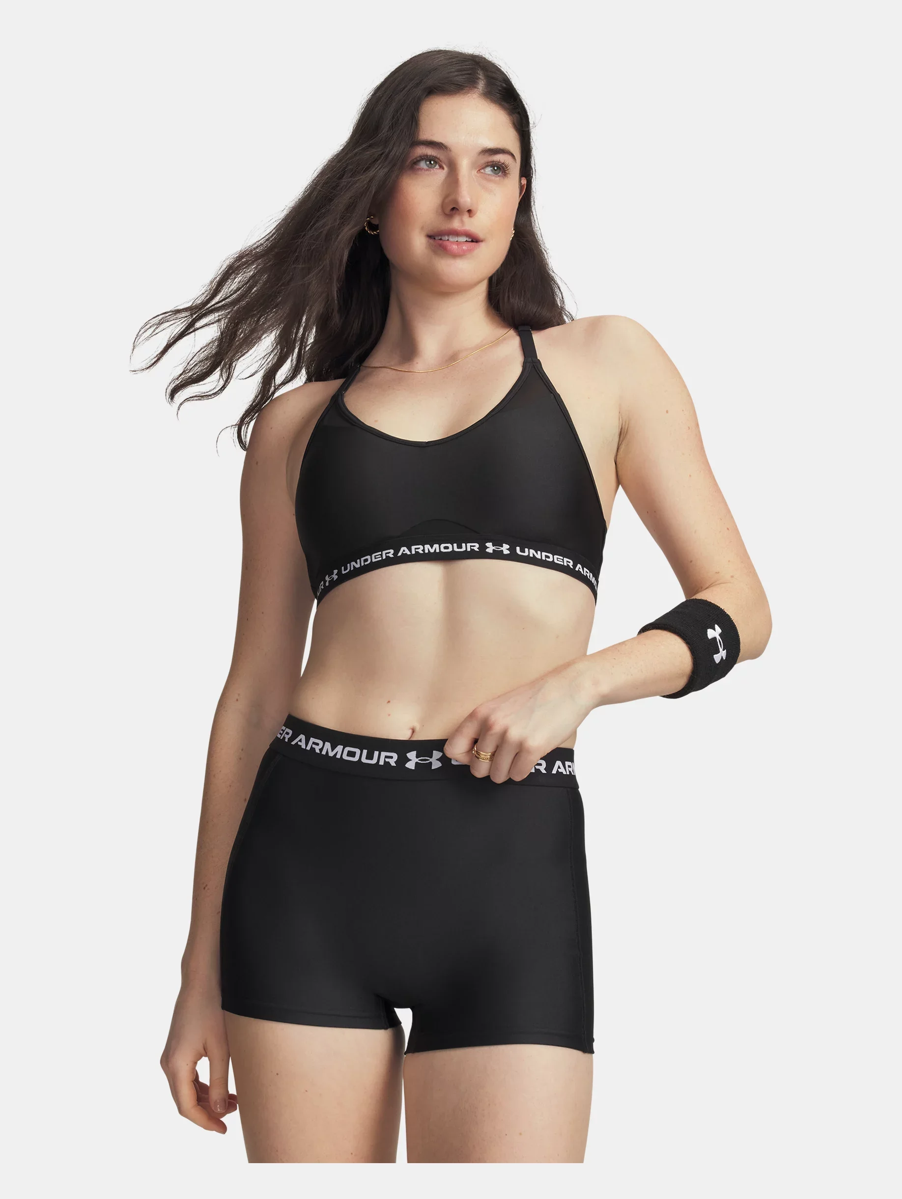 Product Details - Built for Light-Support activity & all-day comfort - Removable cups for enhanced shape & coverage - Mesh panels at front neckline & lower bust for added breathability - Quick & easy adjusts on front of straps for a custom fit - Deep V neckline & exposed elastic bottom band with wordmark detail - HeatGear® fabric delivers superior next-to-skin feel, wicks sweat & dries really fast - Odor control technology minimizes odor - UPDATED SIZING: We revamped our bra sizing so you can find a fit that feels custom to your unique shape—check the size chart to find your perfect match Size & Fit - Ultra-tight, second-skin fit. Space & Care - Style #: 1386424 - 87% Polyester/13% Elastane - Imported - Remove pads before washing - Machine wash cold with like colors - Do not bleach - Tumble dry low - Do not iron - Do not use softeners - Do not dry clean