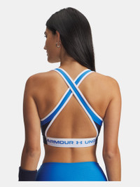 This is the go-to sports bra for athletes.It's supportive, wicks sweat, and is so stretchy and comfortable you'll forget it's even there. Plus, the open back design is super flattering. Product Details - Delivers strategic support, tailored for medium-support activities like cycling, weight training & boxing - Removable cups for enhanced shape & coverage - Crossover straps with open back design for ultimate breathability & easy on/off - Elastic band feels super-smooth & soft - Super-smooth, double-layer HeatGear® fabric delivers superior next-to-skin feel - Material wicks sweat & dries really fast & light - High-neck front for added coverage Size & Fit - Ultra-tight, second-skin fit. Space & Care - Style #: 6005838 - 87% Polyester/13% Elastane - Imported