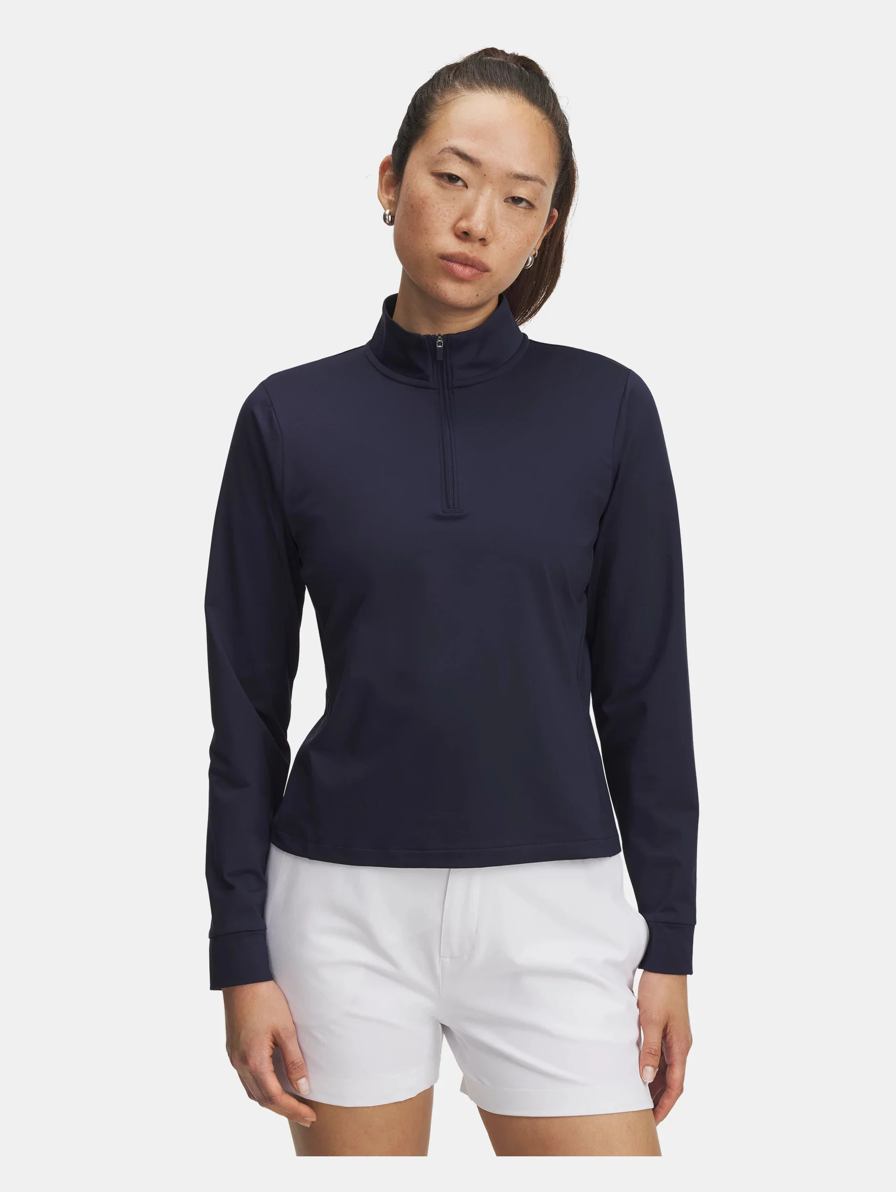 It doesn't get much more comfortable than this.This ¼ zip's extra-stretchy fabric moves with you, not against you, so you never feel held back on the course. Product Details - UA Storm technology repels water without sacrificing breathability - New, lighter weight knit fabric is super-comfortable & lightly brushed for just the right amount of warmth - 4-way stretch material moves better in every direction - UPF 50+ protects your skin from the sun's harmful rays - ¼ zip front with clean, sleek look makes for easy layering Size & Fit - Streamlined fit that's not too tight or too loose. Space & Care - Style #: 6003797 - 86% Polyester/14% Elastane - Imported