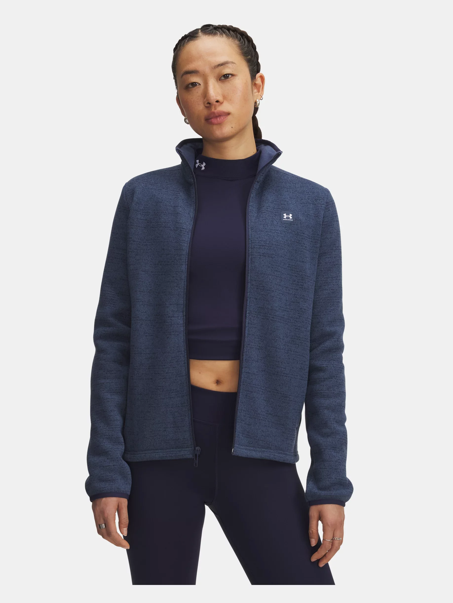 This has all the breathable warmth of a sweater, but the performance of UA fleece—so it wicks and dries. It's everything you need for the outdoors. Product Details - Soft, comfortable sweater-knit fabric provides all-day warmth - Secure, zip hand pockets - Binding at collar & cuffs Size & Fit - Fuller cut for complete comfort. Space & Care - Style #: 1387026 - 100% Polyester - Imported - Machine wash cold with like colors - Use only non-chlorine bleach when needed - Tumble dry low - Do not iron - Do not use softeners - Do not dry clean