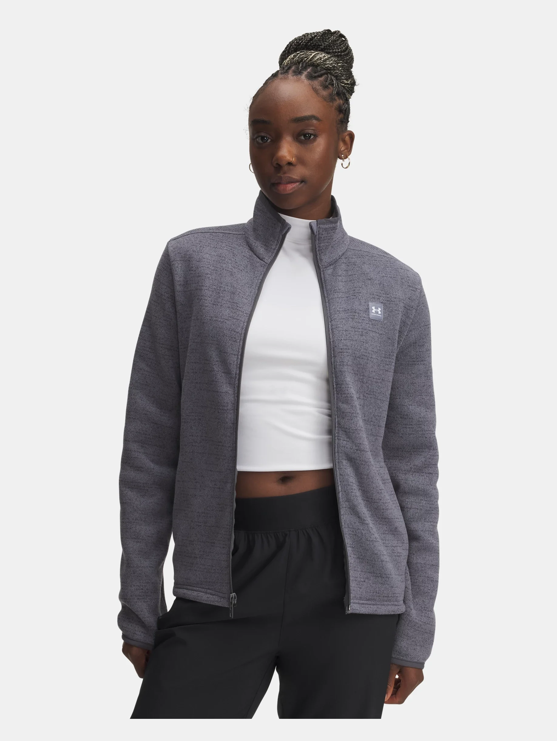 This has all the breathable warmth of a sweater, but the performance of UA fleece—so it wicks and dries. It's everything you need for the outdoors. Product Details - Soft, comfortable sweater-knit fabric provides all-day warmth - Secure, zip hand pockets - Binding at collar & cuffs Size & Fit - Fuller cut for complete comfort. Space & Care - Style #: 1387026 - 100% Polyester - Imported - Machine wash cold with like colors - Use only non-chlorine bleach when needed - Tumble dry low - Do not iron - Do not use softeners - Do not dry clean