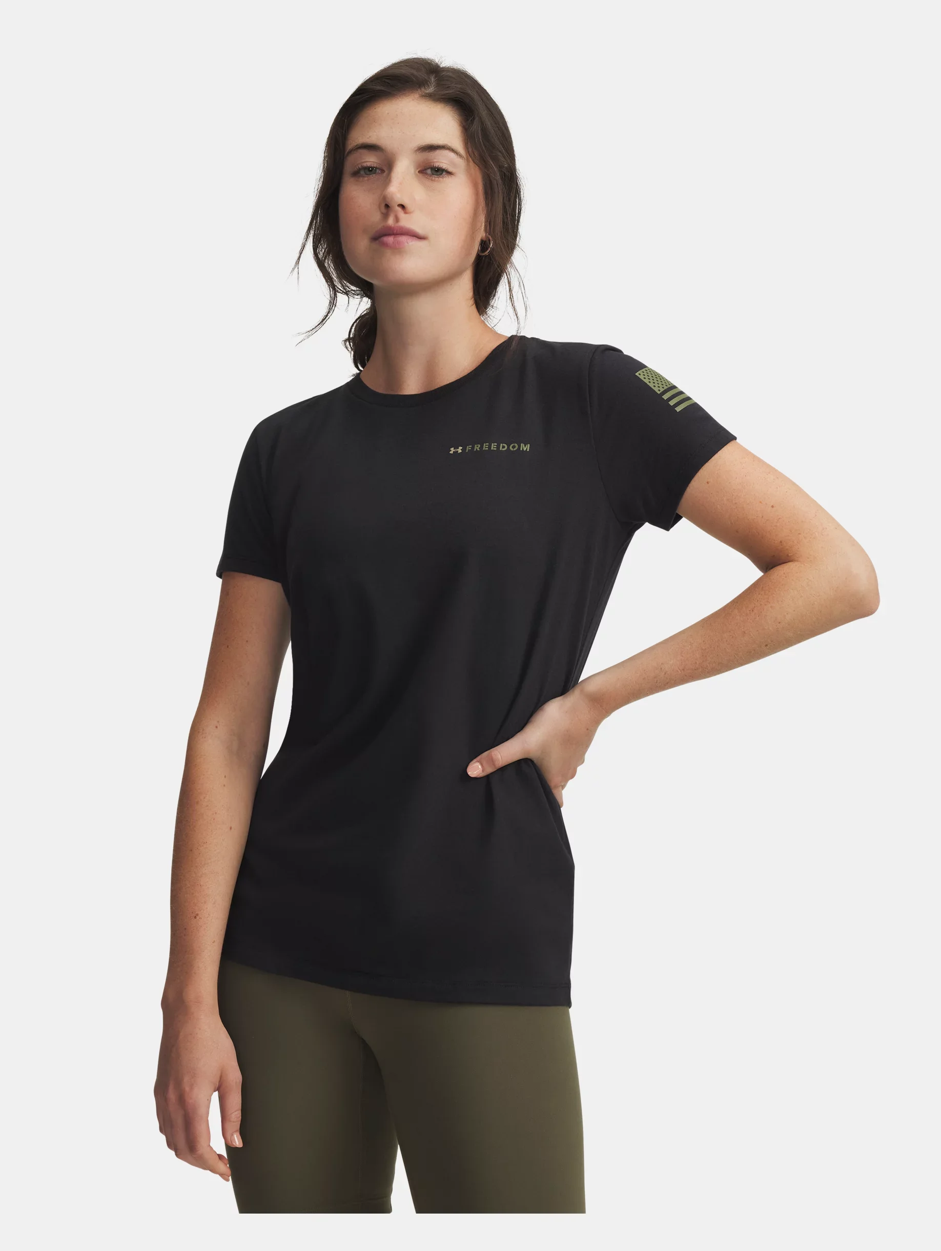 UA Freedom's goal is to support and inspire the brave men and women dedicated to protecting us, every day. This graphic T is soft and comfortable with flag graphics. Product Details - Super-soft, cotton-blend fabric provides all-day comfort - Ribbed collar Size & Fit - Fuller cut for complete comfort. Space & Care - Style #: 6004058 - 60% Cotton/40% Polyester - Imported