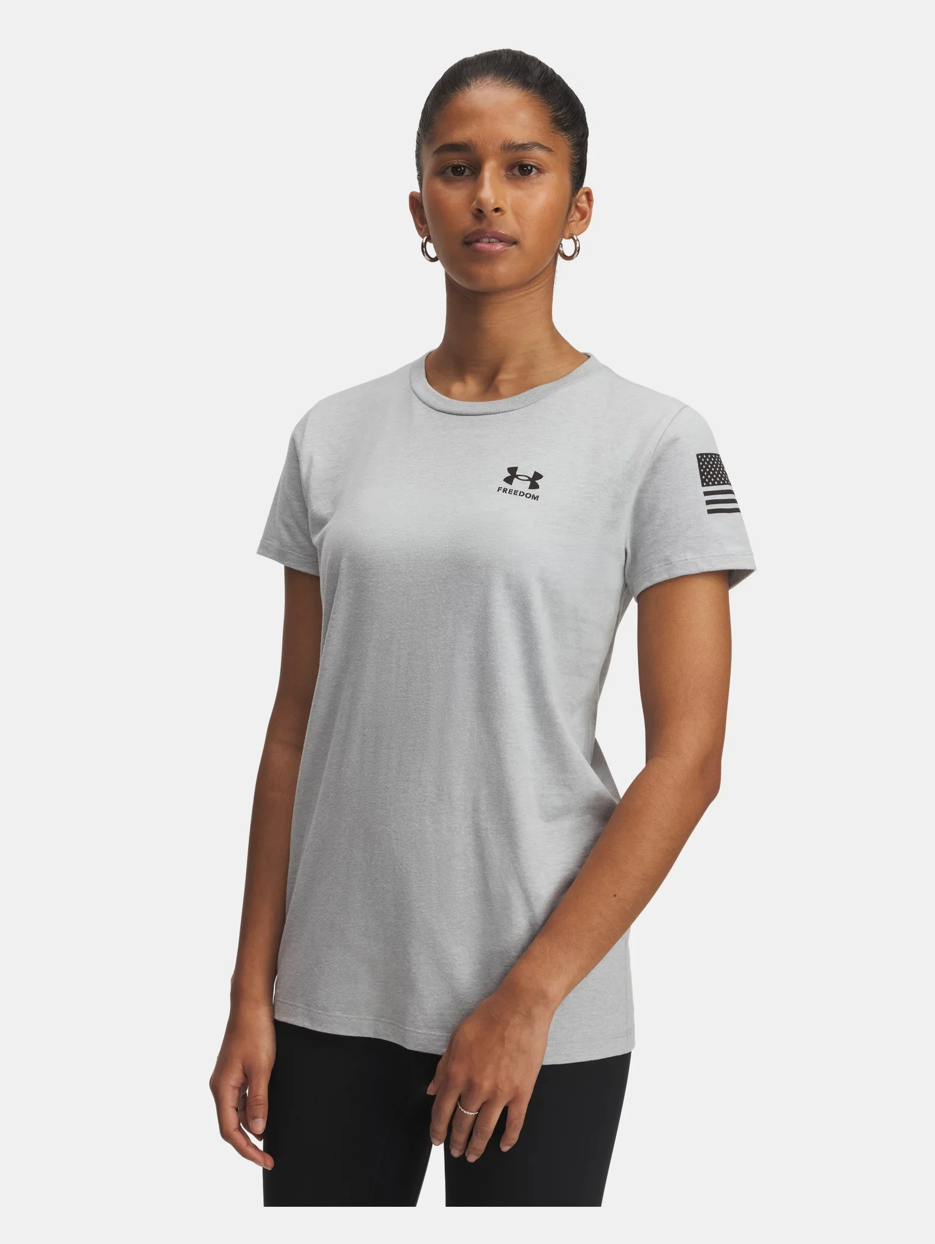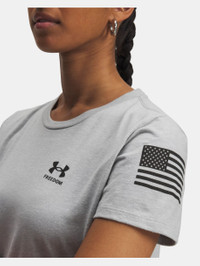 UA Freedom's goal is to support and inspire the brave men and women dedicated to protecting us, every day. This graphic T is soft and comfortable with a classic flag graphic. Product Details - Super-soft, cotton-blend fabric provides all-day comfort - Ribbed collar Size & Fit - Fuller cut for complete comfort. Space & Care - Style #: 6004055 - 60% Cotton/40% Polyester - Imported