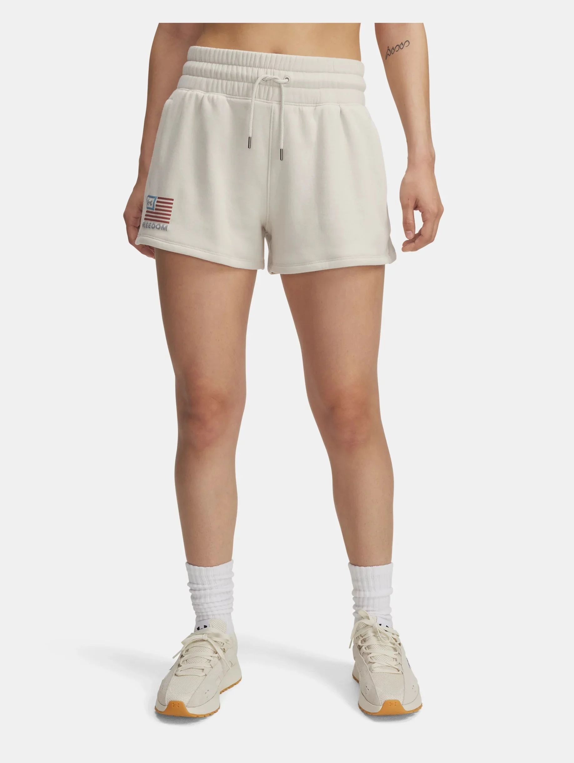 UA Freedom's goal is to support and inspire the brave men and women dedicated to protecting us, every day. Product Details - Ultra-soft cotton-blend fleece with brushed inside for extra warmth - Encased elastic waistband with external drawcord - Open hand pockets - Main body fabric engineered to reduce fiber shedding leveraging Under Armour's Fiber Shed Test Method Size & Fit - Fuller cut for complete comfort. Space & Care - Style #: 1386358 - Inseam: 3" - Pockets: Yes - 56% Cotton/44% Polyester - Imported - Machine wash cold with like colors - Do not bleach - Tumble dry low - Do not iron - Do not use softeners - Do not dry clean