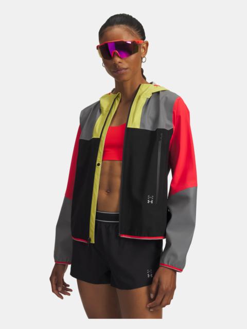 The Halo State:where form and function fall into lock step. Our new collection of gear is made in perfect synergy. A waterproof running jacket engineered to keep you dry and light for miles. Product Details - Sport Activity Recommendation: Road running - Weather Conditions: Windy, light rain - UA Storm technology repels water without sacrificing breathability - Bonded, 2.5-layer waterproof fabric with sealed seams is lightweight & super-durable - Bonded brim hood for no-bounce run - Oversized front zip pockets - Locker loop on center back for easy hang up - Reflective panels & logos for ultra visibility Size & Fit - Fuller cut for complete comfort. Space & Care - Style #: 6007040 - 57% Nylon/24% Polyester/19% Elastane - Imported - Do not wash - Do not bleach - Do not tumble dry - Do not iron - Do not dry clean