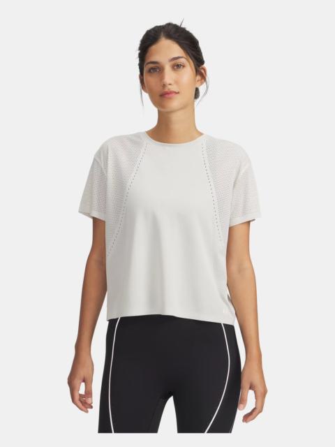 The Halo State:where form and function fall into lock step. Our new collection of gear is made in perfect synergy. A top engineered to be crazy breathable with a design that keeps you light and focused through every rep. Product Details - Sport Activity Recommendation: HIIT, Interval Training, High Intensity Workouts, Lifting - Weather Conditions: Warm temperatures - Lightweight knit fabric is soft & comfortable - Body-mapped, open hole perforation for ventilation where you need it most - Material wicks sweat & dries really fast - 4-way stretch material moves better in every direction Size & Fit - Fuller cut for complete comfort. Space & Care - Style #: 6004017 - Reflective logos - 85% Polyester/15% Elastane - Imported - Machine wash cold with like colors - Do not bleach - Tumble dry low - Do not iron - Do not use softeners - Do not dry clean