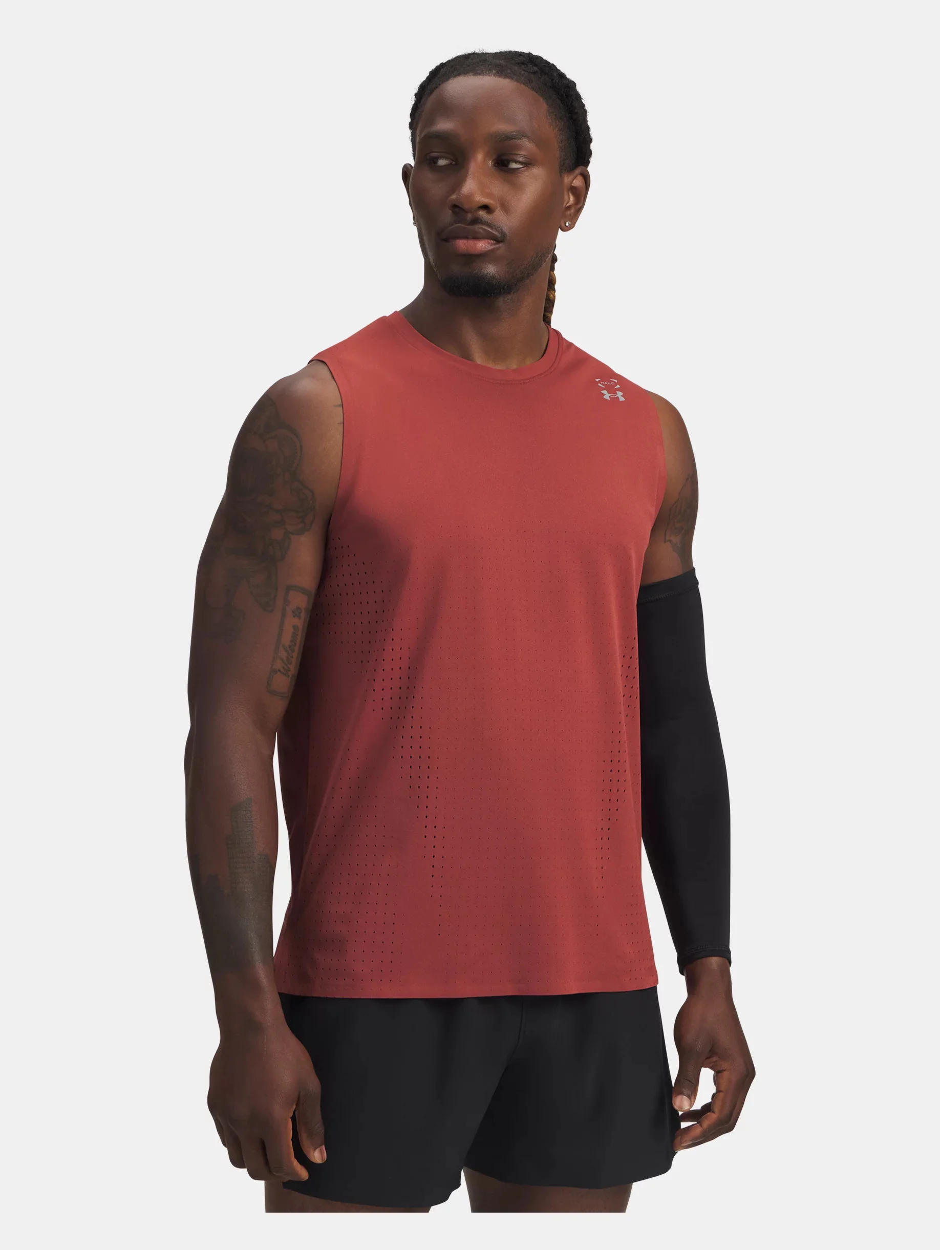 The Halo State:where form and function fall into lock step. Our new collection of gear is made in perfect synergy. A sleeveless top engineered to be crazy breathable with a design that keeps you light and focused through every rep. Product Details - Sport Activity Recommendation: HIIT, Interval Training, High Intensity Workouts, Lifting - Weather Conditions: Warm temperatures - Lightweight knit fabric is soft & comfortable - Body-mapped, open hole perforation for ventilation where you need it most - Material wicks sweat & dries really fast - 4-way stretch material moves better in every direction - Dropped armholes for full range of motion - Main body fabric contains at least 80% recycled polyester, excluding trims & embellishments Size & Fit - Streamlined fit that's not too tight or too loose. Space & Care - Style #: 6007090 - Reflective logos - 85% Polyester/15% Elastane - Imported - Machine wash cold with like colors - Do not bleach - Tumble dry low - Do not iron - Do not use softeners - Do not dry clean