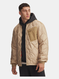 This jacket gives you warmth without bulk, protection from the elements, and a classic, heritage look with an all-over quilted pattern. Product Details - UA Storm technology repels water without sacrificing breathability - Lightweight ripstop woven fabric with quilted pattern delivers superior comfort & durability - All-over 120g synthetic insulation for midweight warmth without any excess bulk - Ribbed collar & cuffs - Secure zip hand pockets & chest pocket - Main body fabric contains at least 90% recycled polyester, excluding trims & embellishments Size & Fit - Fuller cut for complete comfort. Space & Care - Style #: 6000522 - 100% Polyester - Imported