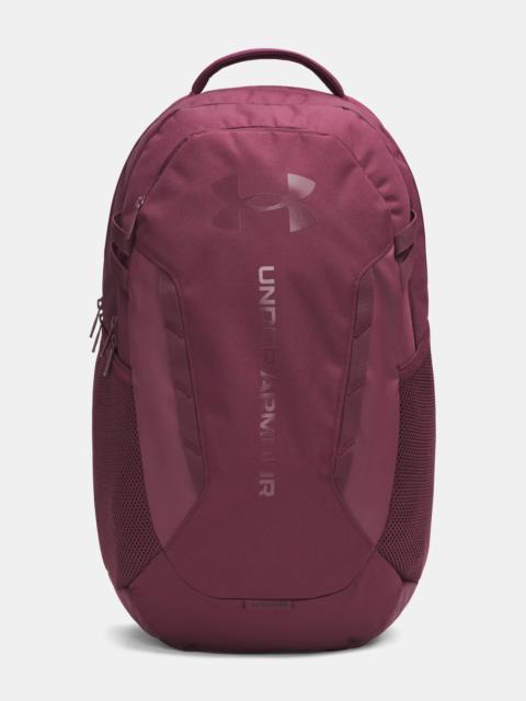 What's it do? This backpack does it all. It's water-repellent for the rain, tough as nails, comfortable as anything, and has all the pockets you need to hold all your stuff. Product DNA - Water-resistant UA Storm technology keeps your essentials dry - Soft-to-the-touch top coat on material for added durability - Soft-lined laptop sleeve—holds up to 16" MacBook Pro® or similarly sized laptop - Secondary compartment can be dual-purposed as a shoe/laundry pocket - Secure zip front pocket for essential item storage & side water bottle pocket that fits 32oz bottle - Molle webbing for additional attachment points - Top grab handle - One Size Fits Most - Style #: 1384672 - Dimensions When Full: 6.6"W x 20.1"H x 12.6"L - Volume: 29 L - 100% Polyester - Imported