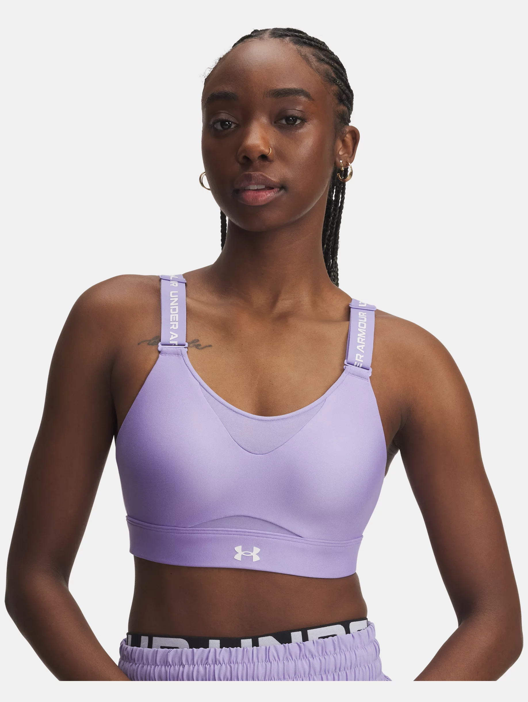 With a unique support tech that syncs with your every move plus ultra-light hollow foam padding, UA Infinity Bra is engineered for limitless support. Product Details - Delivers strategic support, tailored for high-support activities like running, court sports & field sports - New injection-molded pad with strategic pattern for a more aerodynamic fit & a lighter feel - Front mesh panel for added breathability - Smooth, sweat-wicking band has easy hook & eye closure for easy on & off - Front adjustable, convertible straps can be worn straight or crossback - Material wicks sweat & dries really fast - Odor control technology minimizes odor - UPDATED SIZING: We revamped our bra sizing so you can find a fit that feels custom to your unique shape—check the size chart to find your perfect match Size & Fit - Streamlined fit that's not too tight or too loose. Space & Care - Style #: 1384112 - 87% Polyester/13% Elastane - Imported - Machine wash cold with like colors - Do not bleach - Line dry - Do not iron - Do not dry clean