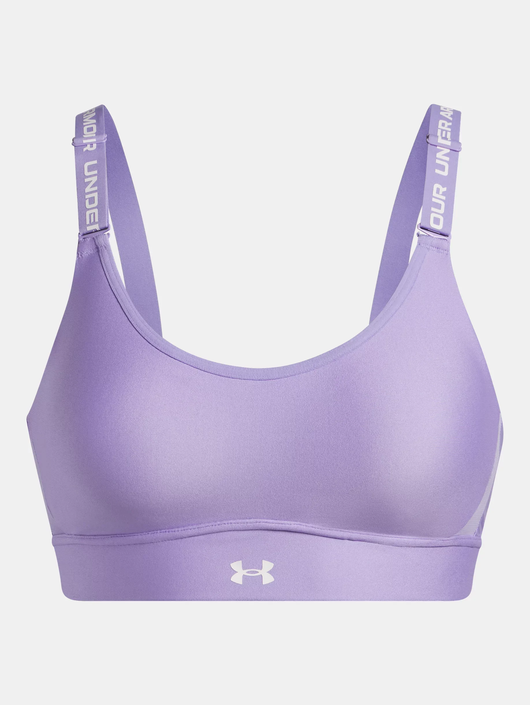 With a unique support tech that syncs with your every move plus ultra-light hollow foam padding, UA Infinity Bra is engineered for limitless support. Product Details - Delivers strategic support, tailored for medium-support activities like cycling, weight training & boxing - New injection-molded pad with strategic pattern for a more aerodynamic fit & a lighter feel - Mesh side panels provide added breathability & ventilation - Smooth, sweat-wicking encased elastic band has easy hook & eye closure for easy on & off - Front adjustable, convertible straps can be worn straight or crossback - Material wicks sweat & dries really fast - Odor control technology minimizes odor - UPDATED SIZING: We revamped our bra sizing so you can find a fit that feels custom to your unique shape—check the size chart to find your perfect match Size & Fit - Streamlined fit that's not too tight or too loose. Space & Care - Style #: 1384123 - 87% Polyester/13% Elastane - Imported - Machine wash cold with like colors - Do not bleach - Line dry - Do not iron - Do not dry clean