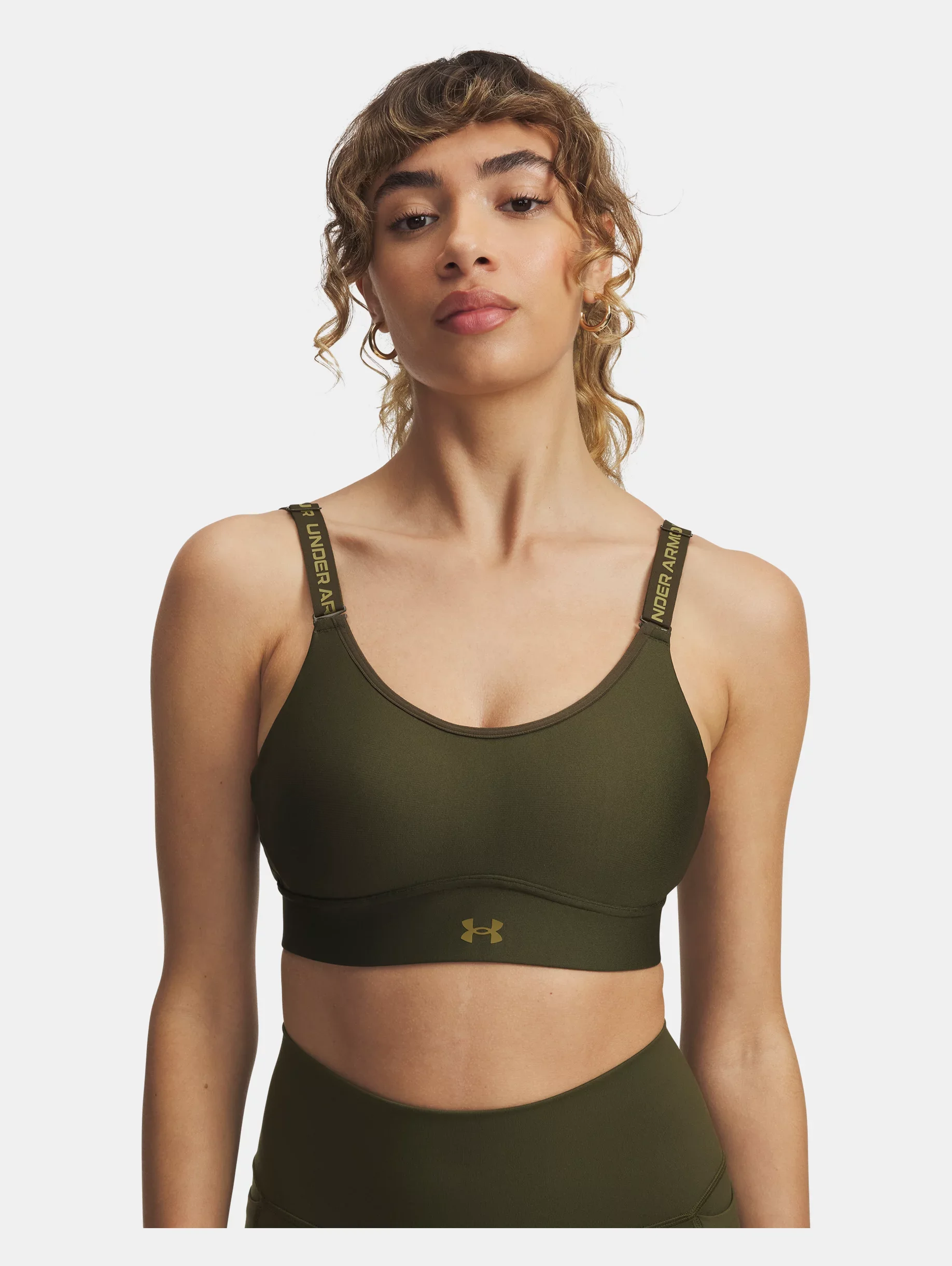 With a unique support tech that syncs with your every move plus ultra-light hollow foam padding, UA Infinity Bra is engineered for limitless support. Product Details - Delivers strategic support, tailored for medium-support activities like cycling, weight training & boxing - New injection-molded pad with strategic pattern for a more aerodynamic fit & a lighter feel - Mesh side panels provide added breathability & ventilation - Smooth, sweat-wicking encased elastic band has easy hook & eye closure for easy on & off - Front adjustable, convertible straps can be worn straight or crossback - Material wicks sweat & dries really fast - Odor control technology minimizes odor - UPDATED SIZING: We revamped our bra sizing so you can find a fit that feels custom to your unique shape—check the size chart to find your perfect match Size & Fit - Streamlined fit that's not too tight or too loose. Space & Care - Style #: 1384123 - 87% Polyester/13% Elastane - Imported - Machine wash cold with like colors - Do not bleach - Line dry - Do not iron - Do not dry clean