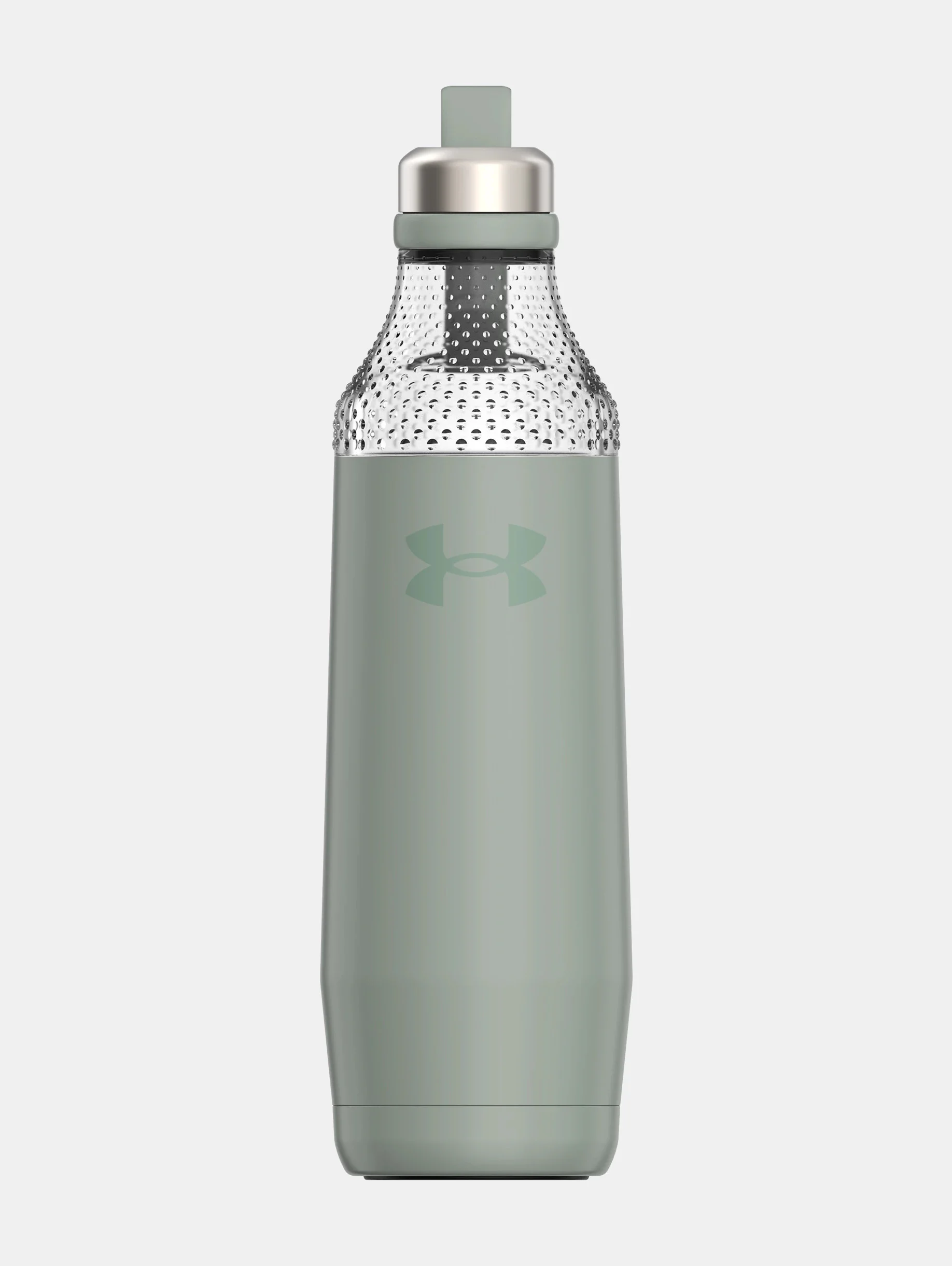 What's it do? A wide twist-off top lets you add ice or protein powder quickly and easily. Use as a vacuum-insulated water bottle during your workout and as a tumbler before or after. Product DNA - Twist-off Tritan™ top is shatter-, stain- & odor-resistant & converts bottle into 18 oz. tumbler - Stainless steel & vacuum-insulated for maximum temperature retention—keeps beverages cold for 12 hours - Non-slip silicone bottom provides quiet set-down on any surface - Carry loop for easy transport - Large opening for easy fill & cleaning with twist-to-seal lid that helps keep spout clean - BPA & lead free - One Size Fits All - Style #: 1372205 - Capacity: 22 oz. (bottle) or 18 oz. (tumbler) - Dimensions: 11.1"H x 3.15"W x 3.54"D - Manufactured by USB, exclusive licensee of Under Armour® - Imported