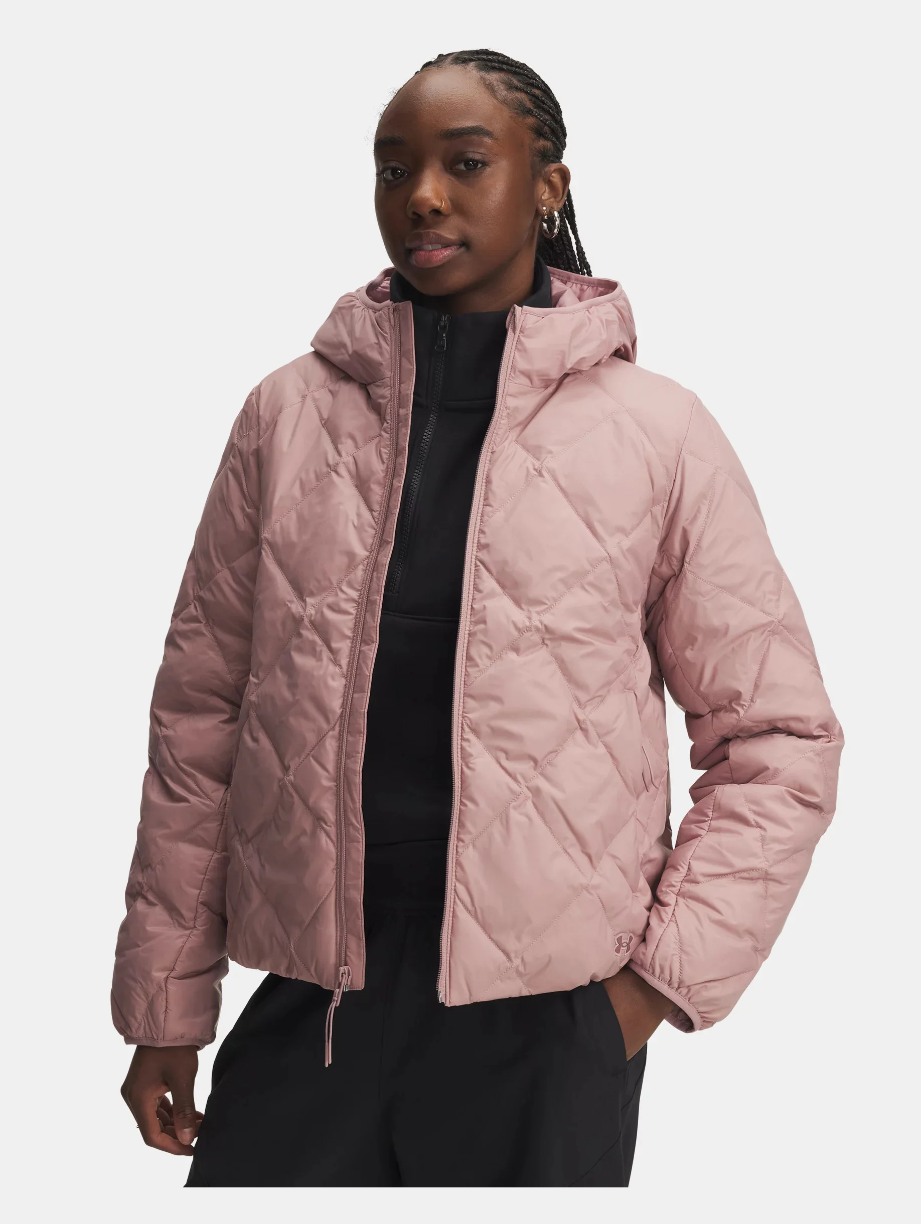 This is our go-to down jacket for Winter.It's crazy-warm, light, and has a diamond quilt design for elevated style. Product Details - UA Storm technology repels water without sacrificing breathability - 600-fill Allied duck down insulation provides extreme warmth & is ethically sourced & traceable via tag - ColdGear® Infrared lining uses a soft, thermo-conductive coating to absorb & retain your body heat - All-over diamond quilt design - Secure zip hand pockets with cozy fleece lining - Encased elastic cuffs & adjustable bottom hem for a secure fit Size & Fit - Fuller cut for complete comfort. Space & Care - Style #: 6008818 - 100% Polyester - Imported