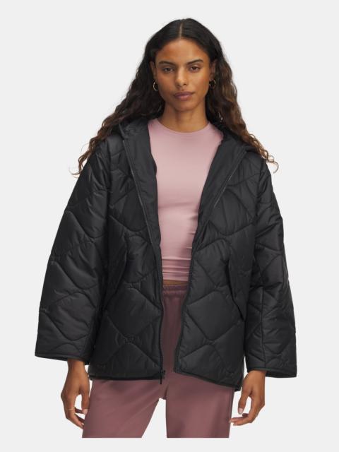 With virtually weightless cold-weather tech and a crazy-soft, cozy velvet outer, UA Limitless Down doesn't look like a technical puffer—it just performs like one. Product Details - Ultra-soft crushed velvet material for ultimate comfort with an elevated look & feel - 700-fill Allied duck down insulation provides extreme warmth & is responsibly sourced & traceable via tag - ColdGear® Infrared lining uses a soft, thermo-conductive coating to absorb & retain your body heat - Cozy fleece-lined collar for added warmth & comfort - Secure zip hand pockets & interior chest pocket - Soft, ColdGear® knit interior cuffs for added comfort & interior bottom hem adjusts for a secure fit Size & Fit - Fuller cut for complete comfort. Space & Care - Style #: 6008820 - 77% Viscose/23% Nylon - Imported