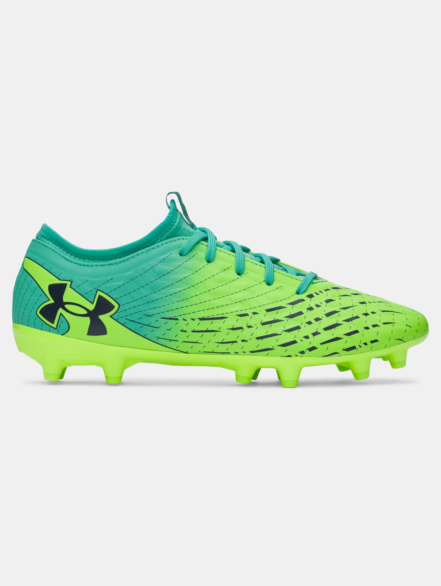 It used to take some time to get your cleats to fit and feel just right.Not anymore. The UA Magnetico Select 5 requires zero break-in, giving you a perfect fit straight out of the box. Product Details - Super-soft synthetic leather upper provides a snug fit - 3D print & mudguard for additional touch & control - Textile collar & tongue for a sock-like fit with premium internal foam for heel hold & added comfort - Offset tongue allows for additional space on the medial side for control, passing & shooting - TPU outsole with conical studs provides ideal traction Size & Fit - Regular Space & Care - Style #: 6000540 - Weight: 8.4 oz - Lace type: Standard tie - Imported - Fits 1 to size