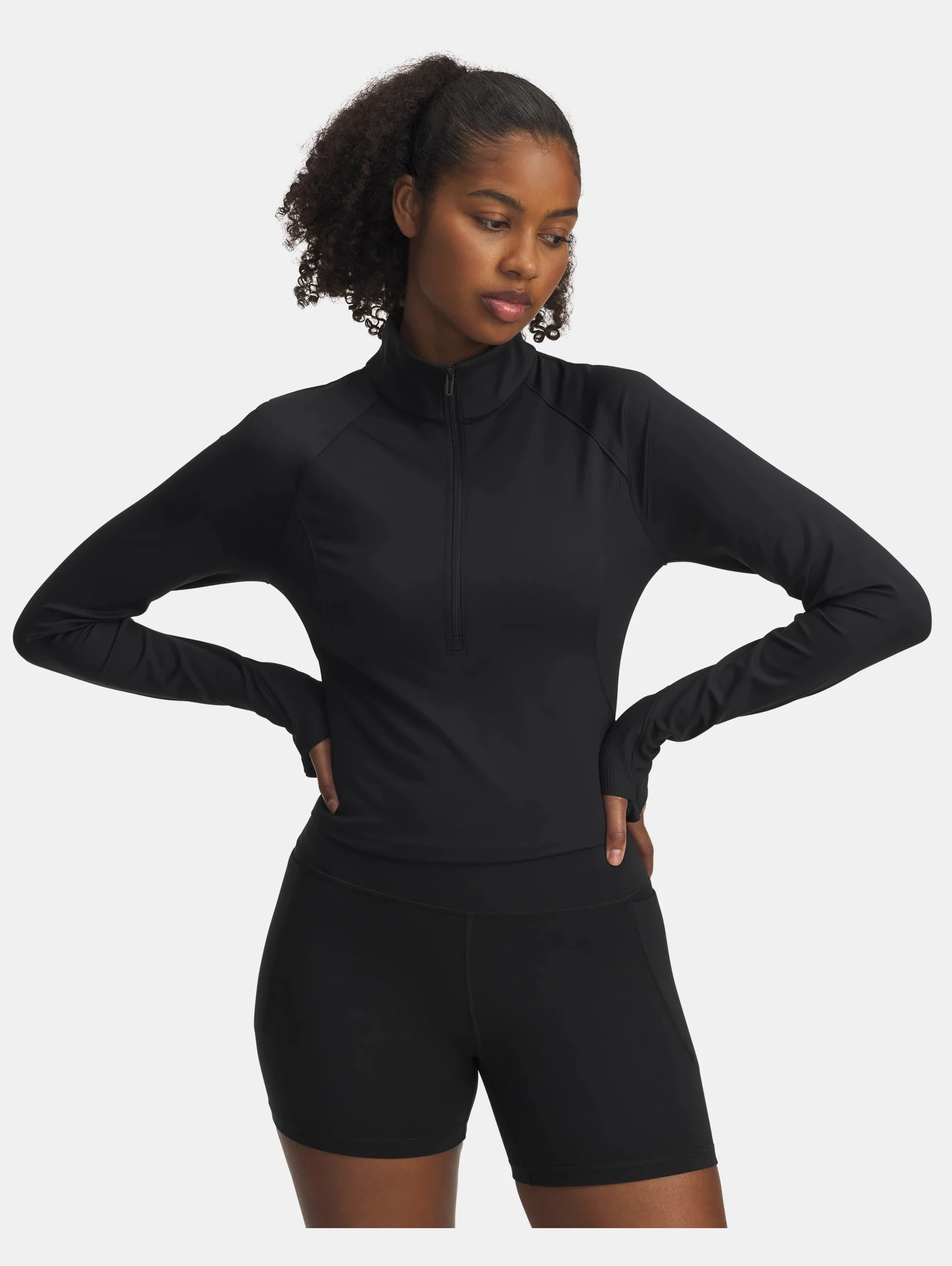 UA Meridian staples are not only ultra soft, they're also light, quick-drying, and designed to flatter your body in all the right places. You'll literally wear them everywhere. Product Details - Super-soft & stretchy performance knit fabric delivers support & lasting comfort with improved durability - Material wicks sweat & dries really fast - 4-way stretch material moves better in every direction - Ribbed side panels for added stretch & comfort - Generous ½ Zip front makes for easy layering - Built-in thumbholes help keep sleeves in place - Raglan sleeves Size & Fit - Streamlined fit that’s not too tight or too loose. Space & Care - Style #: 6003993 - 80% Polyester/20% Elastane - Imported