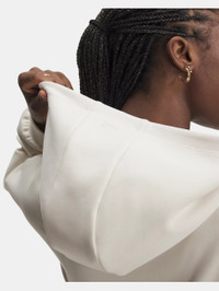 UA Meridian staples are not only ultra soft, they're also light, quick-drying, and designed to flatter your body. Updated with a relaxed fit and premium fabric—you'll literally wear this hoodie everywhere. Product Details - Super-soft, lux knit fabric with a sanded finish is ultra cozy - 4-way stretch material moves better in every direction - Drop hem shoulder & cropped body length Size & Fit - Fuller cut for complete comfort. Space & Care - Style #: 6004004 - 53% Polyester/37% Modal/10% Elastane - Imported