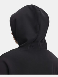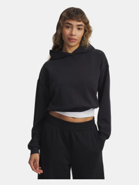 UA Meridian staples are not only ultra soft, they're also light, quick-drying, and designed to flatter your body. Updated with a relaxed fit and premium fabric—you'll literally wear this hoodie everywhere. Product Details - Super-soft, lux knit fabric with a sanded finish is ultra cozy - 4-way stretch material moves better in every direction - Drop hem shoulder & cropped body length Size & Fit - Fuller cut for complete comfort. Space & Care - Style #: 6004004 - 53% Polyester/37% Modal/10% Elastane - Imported