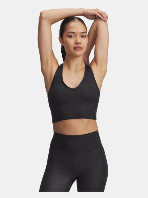 This bra top is built to flatter, with a cropped, body-hugging cut and super-soft fabric with a suede-like look. Product Details - Delivers strategic support, tailored for low-impact activities like yoga, pilates & hiking - Super-soft & stretchy performance knit with printed suede-effect visual delivers support & lasting comfort - Material wicks sweat & dries really fast - 4-way stretch material moves better in every direction - Longline silhouette with removable cups for enhanced shape & coverage - Deep V-neck collar & forward side seams shape & flatter the body Size & Fit - Streamlined fit that's not too tight or too loose. Space & Care - Style #: 6005754 - 82% Polyester/18% Elastane - Imported