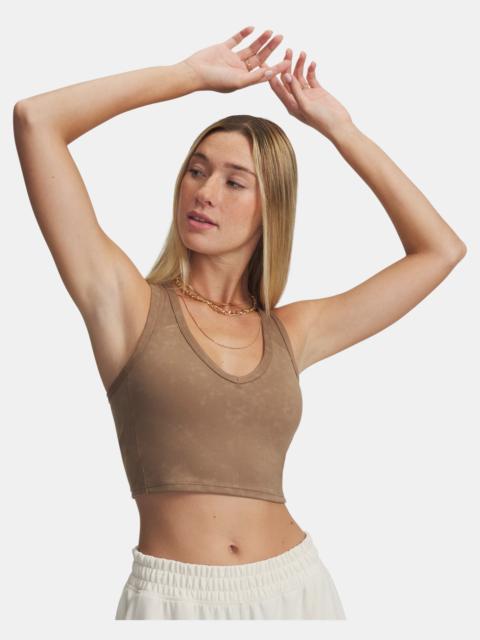 This bra top is built to flatter, with a cropped, body-hugging cut and super-soft fabric with a suede-like look. Product Details - Delivers strategic support, tailored for low-impact activities like yoga, pilates & hiking - Super-soft & stretchy performance knit with printed suede-effect visual delivers support & lasting comfort - Material wicks sweat & dries really fast - 4-way stretch material moves better in every direction - Longline silhouette with removable cups for enhanced shape & coverage - Deep V-neck collar & forward side seams shape & flatter the body Size & Fit - Streamlined fit that's not too tight or too loose. Space & Care - Style #: 6005754 - 82% Polyester/18% Elastane - Imported
