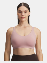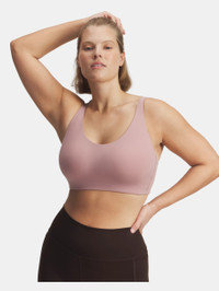 This specially engineered fabric delivers a unique type of softness that can still wick sweat like a champ. It's lightweight, it's breathable, and it's ready to work. Product Details - Delivers strategic support, tailored for low-impact activities like yoga, pilates & hiking - Super-soft, brushed knit fabric is breathable & comfortable - 4-way stretch material moves better in every direction - Molded, internal spacer cups provide lightweight support & coverage - Bonded straps lay flat on body & are ultra-comfortable for all-day wear - Plunge neckline Size & Fit - Streamlined fit that's not too tight or too loose. Space & Care - Style #: 6004135 - 82% Polyester/18% Elastane - Imported