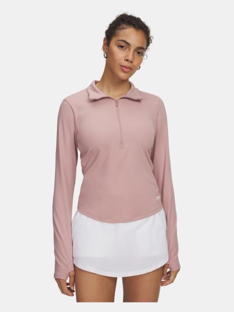 This specially engineered fabric delivers a unique type of softness that can still wick sweat like a champ. It's lightweight, it's breathable, and it's ready to work. Product Details - Super-soft, brushed knit fabric is breathable & comfortable - 4-way stretch material moves better in every direction - Generous ½ zip front makes for easy layering - Built-in thumbholes help keep sleeves in place - Shaped hem - Odor control technology minimizes odor Size & Fit - Streamlined fit that's not too tight or too loose. Space & Care - Style #: 1389789 - 82% Polyester/18% Elastane - Imported