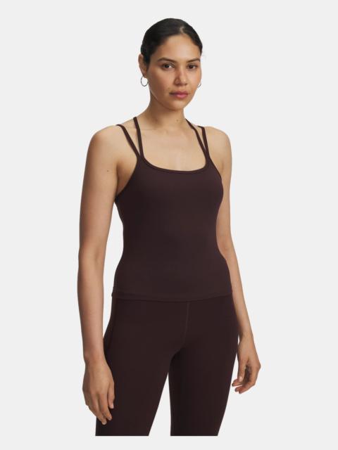 This specially engineered fabric delivers a unique type of softness that can still wick sweat like a champ. It's lightweight, it's breathable, and it's ready to work. Product Details - Ultra-soft fabric is breathable & comfortable - Material wicks sweat & dries really fast - Built-in shelf bra for added coverage & support - Skinny strappy back design - Odor control technology minimizes odor Size & Fit - Streamlined fit that's not too tight or too loose. Space & Care - Style #: 1390529 - 90% Polyester/10% Elastane - Imported