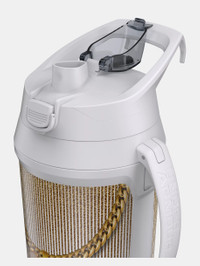 No need to have to re-fill between 2-a-days sessions or during tournaments—this super-sized water bottle's got you covered. Product Details - Foam-insulated for maximum temperature retention keeps beverages cold for 12 hours - Built-in fence hooks for easy hang-up - Lockable, leak-resistant lid also helps keep spout clean - Marked with ounces & milliliters for easy measuring - Ergonomic side handle provides more support when drinking & carrying - Removable cap gasket for easy cleaning Size & Fit - One Size Fits All Space & Care - Style #: 1387637 - BPA & lead free - Dimensions: 11.9" H x 6.85" W x 7" D - Capacity: ½ Gallon - Imported - Handwash only - Before first use: wash all parts with warm, soapy water, rinse thoroughly & allow time to dry - Contents should not be left in the container for longer than 24 hours - Do not use abrasive cleaners or scrubbers since they may dull the finish - Do not use bleach or cleaners containing chlorine on any parts of the product - Do not immerse or soak in water for prolonged periods of time - Lid ONLY is dishwasher safe - For maximum cold retention: chill the bottle first before adding chilled liquid & ice