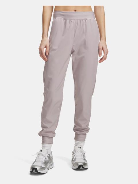 The goal with the UA Woven collection was to make the perfect set of warm-ups that keep your muscles ready, work for any sport, and also pack up super-small in your bag, so you can take them anywhere. Product Details - UA Storm technology repels water without sacrificing breathability - Ultra-light, stretch-woven fabric for totally unrestricted movement - 4-way stretch material moves better in every direction - High-rise encased elastic waistband with internal drawcord - Open hand pockets - Uses a fluorine-free water repellent treatment - Main body fabric contains at least 80% recycled polyester, excluding trims & embellishments Size & Fit - Fuller cut for complete comfort. Space & Care - Style #: 1383315 - Inseam: 27.5" - Pockets: Yes - 87% Polyester/13% Elastane - Imported - Tapered leg fit - Machine wash cold with like colors - Use only non-chlorine bleach when needed - Tumble dry low - Do not iron - Do not use softeners - Do not dry clean