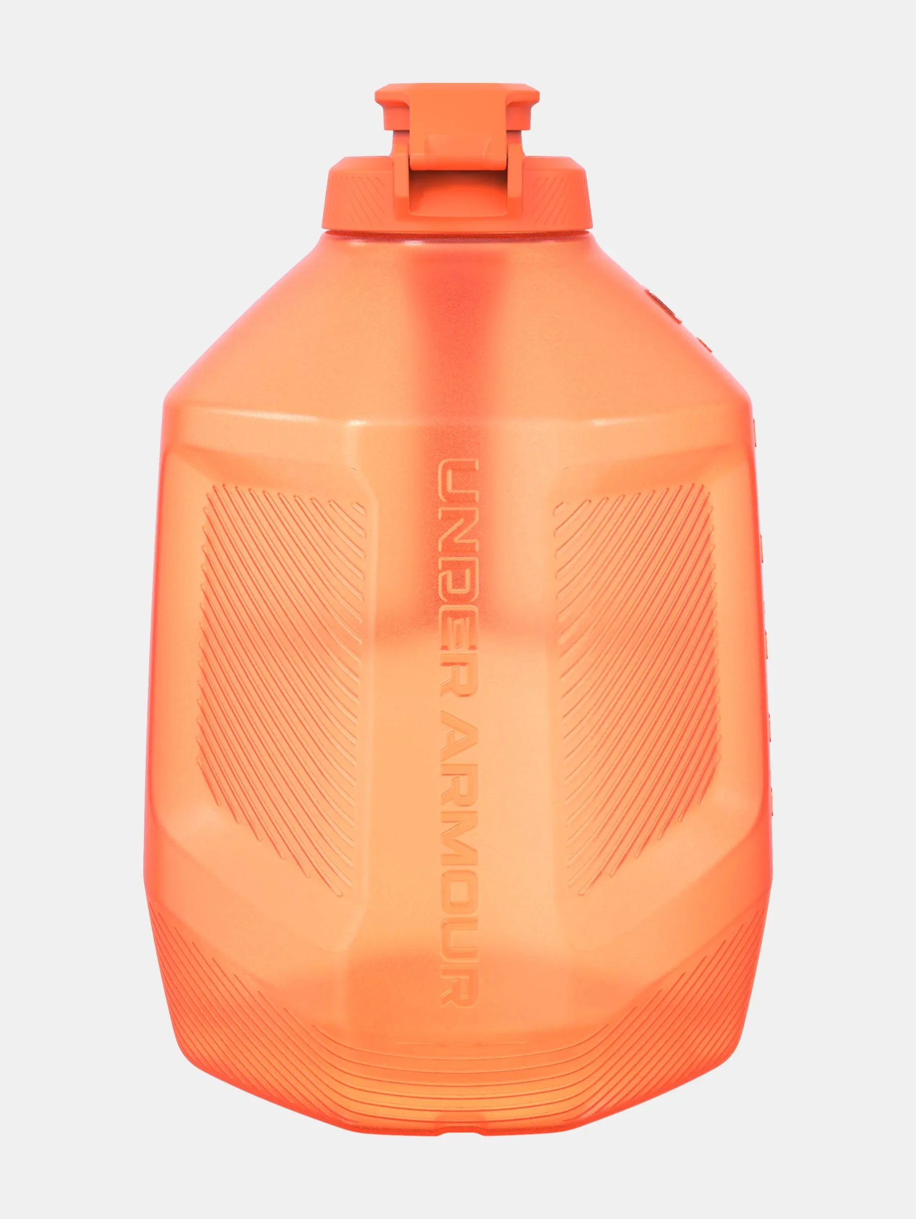 This is a next-level jug.It offers maximum volume and premium details, and is easy to carry and drink from. Product Details - Leakproof 2-way cap with smooth spout design & wide mouth top so it's easy to clean & add ice or supplements - Air gaps on the bottom help reduce heat generation, keeping fluids cooler - Durable, semi-transparent outer body with molded exterior oz/ml markings for easy measuring - Soft molded handle with stainless steel pins for a secure & comfortable grip - Grips on the bottle make it easy to hold the body of the jug with just one hand - Impact-resistant base with flex channels for added durability - Customizable UA Locker Tag for your name or number, so you don't get your jug mixed up with teammates - BPA & lead free Size & Fit - No Fit Type Space & Care - Style #: 1390504 - Capacity: 1 Gallon (128 oz) - Dimensions: 10.75"H x 7" W x 7.25" D - Weight: 12.5 oz (0.8 lbs.) - Manufactured by USB, exclusive licensee of Under Armour® - Imported - Handwash only - Before first use: wash all parts with warm, soapy water, rinse thoroughly & allow time to dry - Contents should not be left in the container for longer than 24 hours - Do not use abrasive cleaners or scrubbers as they will damage the finish - Do not use bleach or cleaners containing chlorine or other harsh chemicals on any parts of the product