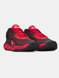 From the blacktop to the hardwood, the Spawn 7 can handle all day tournaments, deep playoff runs, and any challenge in between. This shoe's light, breathable, and mid cut for added support on the court. Product Details - Lightweight, breathable engineered woven mesh upper with TPU skin overlays for added durability - Half-bootie, molded heel provides ultimate ankle support & heel lock, ease of entry & complete comfort - Open mesh tongue for breathability & traditional lacing for lockdown - TPU wing provides lateral containment - Die-cut open cell foam sockliner for best-in-class underfoot comfort - Extra-springy UA HOVR+ cushioning wrapped in Micro G® reduces impact for a responsive feel & complete comfort - Rubber outsole with wave-bone traction pattern for optimal traction & durability on any court surface Size & Fit - Regular Space & Care - Style #: 6000753 - Weight: - Lace type: Standard tie - Imported