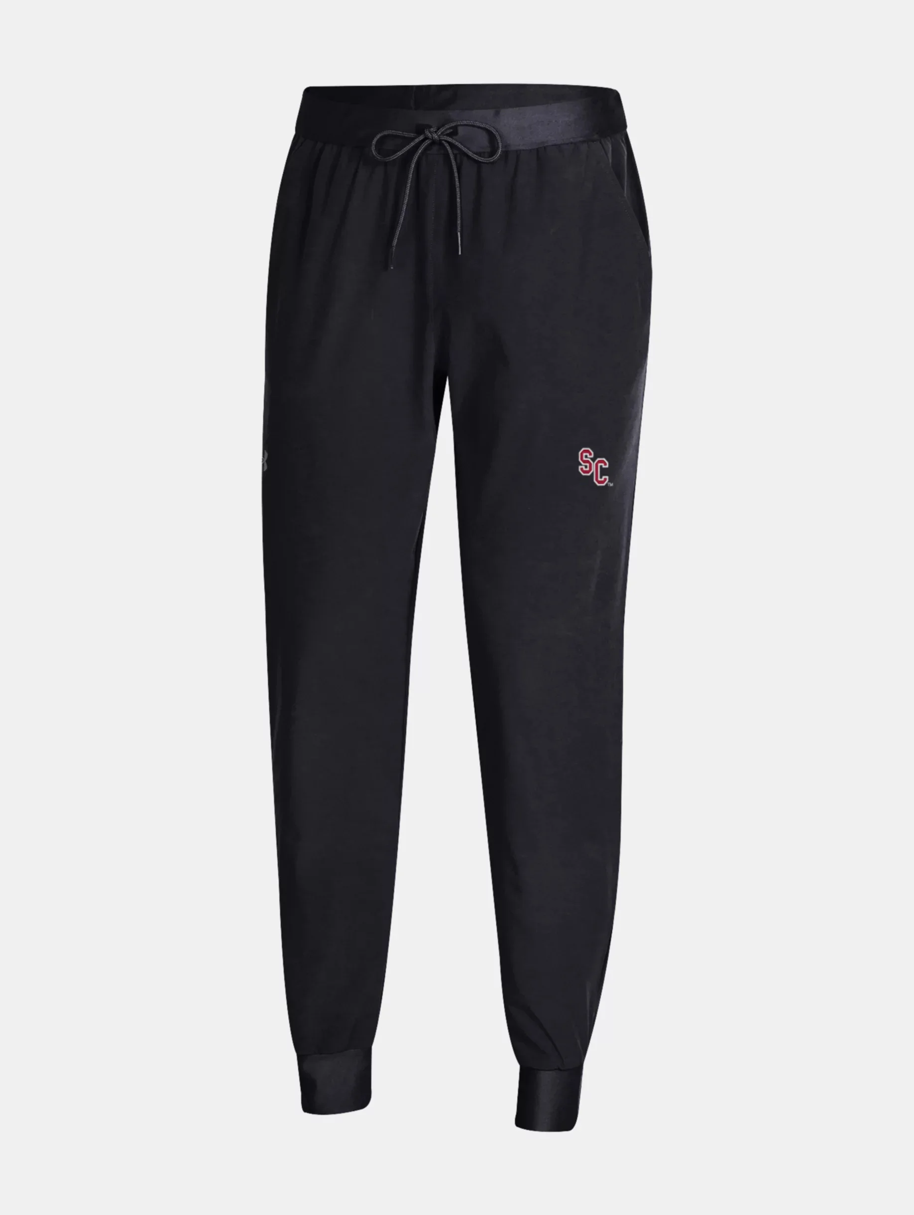 Even our fan gear is built for performance—so you can wear it on the field just as easily as you wear it in the stands. These woven pants are light, durable, and even water-resistant. Product Details - UA Storm technology repels water without sacrificing breathability - Stretch-woven fabric is lightweight, durable & moves with you - 4-way stretch material moves better in every direction - Stretchy encased elastic waistband with external drawcord - Open hand pockets Size & Fit - Fuller cut for complete comfort. Space & Care - Style #: 6014886 - Inseam: 28" - Pockets: Yes - 87% Polyester/13% Elastane - Imported