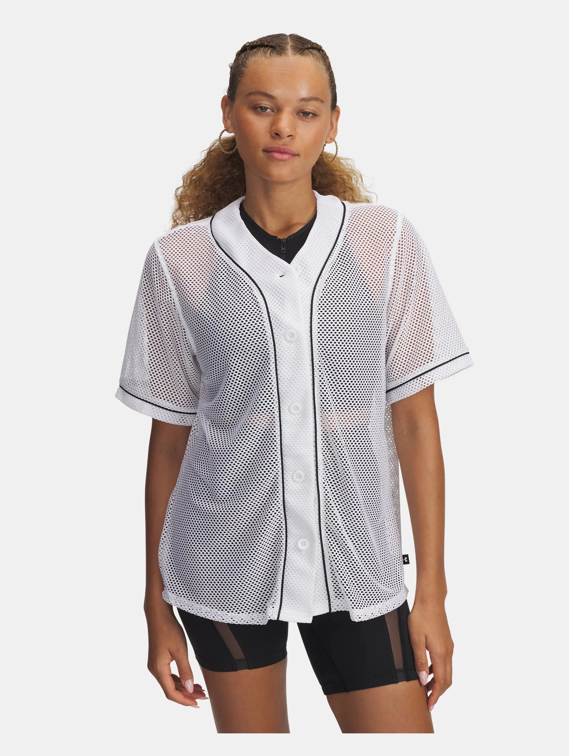 The breathable mesh fabric and relaxed fit makes these perfect for practice or game day. Product Details - Soft, open-hole mesh fabric is super-breathable & comfortable - Material wicks sweat & dries really fast - Front button-up placket - Shaped bottom hem Size & Fit - Fuller cut for complete comfort. Space & Care - Style #: 1389637 - 91% Polyester/9% Elastane - Imported