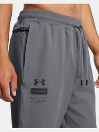 The goal with the UA Woven collection was to make the perfect set of warm-ups that keep your muscles ready, work for any sport, and also pack up super-small in your bag, so you can take them anywhere. Product Details - UA Storm technology repels water without sacrificing breathability - Light, durable & super-comfortable stretch-woven fabric - 4-way stretch material moves better in every direction - Stretchy ribbed waistband with external drawcord - Open hand pockets & secure, zip side pocket - Uses a fluorine-free water repellent treatment Size & Fit - Fuller cut for complete comfort. Space & Care - Style #: 1388016 - Inseam: 29.5" - Pockets: Yes - 90% Polyester/10% Elastane - Imported - Tapered leg fit with ribbed cuffs - Wash garment inside out - Machine wash cold with like colors - Do not bleach - Tumble dry low - Do not iron - Do not use softeners - Do not dry clean