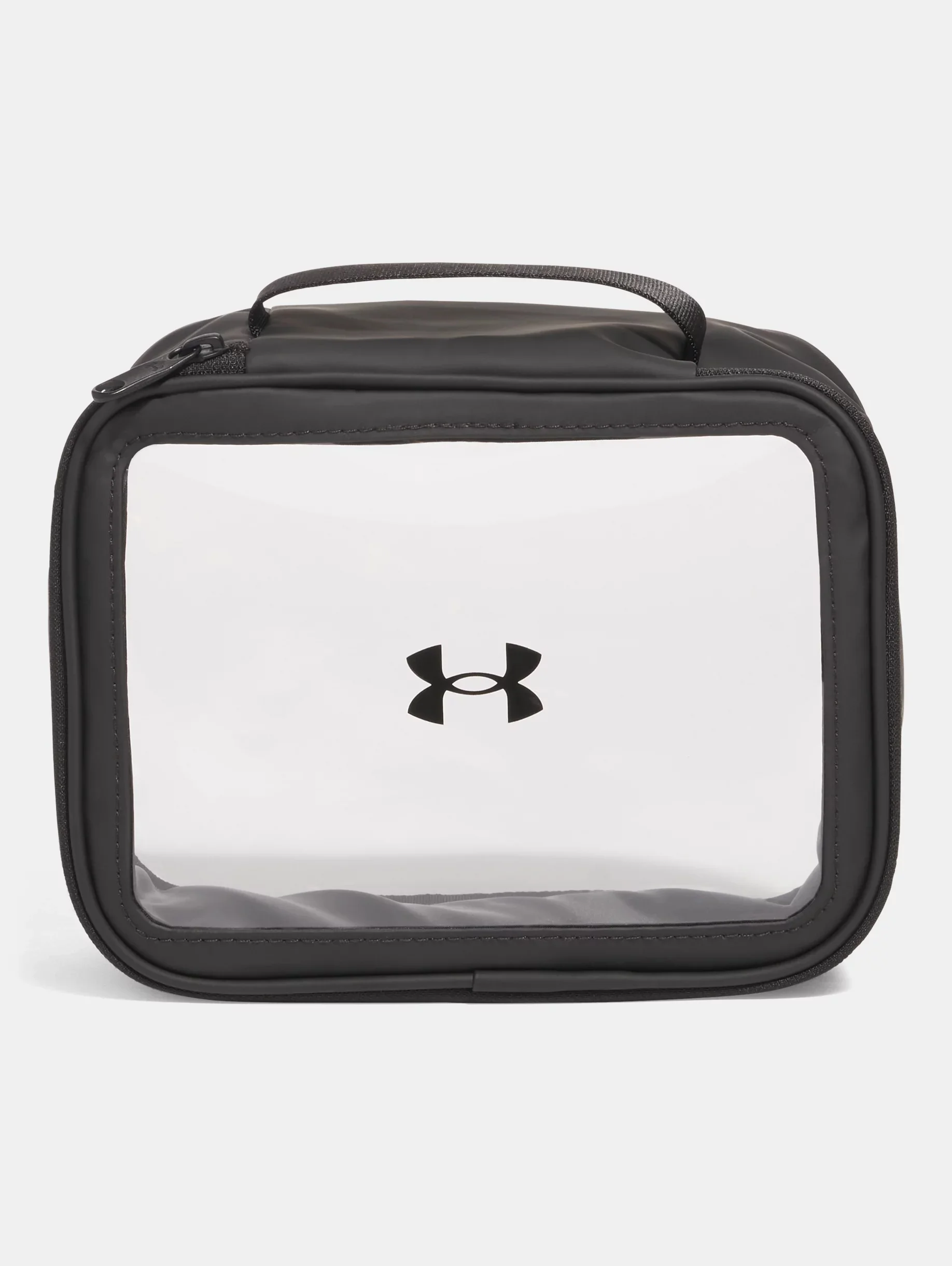 Built to store your make up and toiletries when you're traveling or on the go with an easy-to-clean material and carry handle. Product Details - Water-resistant UA Storm technology keeps your essentials dry - Clear, wipeable TPU front & back with soft PU material around the edges for added durability Size & Fit - One Size Fits Most Space & Care - Dimensions When Full: 8"W x 6"H x 4"D - Volume: 4 L