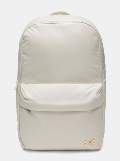 Built specifically for female athletes.Ergonomically sized and shaped for your body, and with all the pockets, adjustability, and features you want. Product Details - Water-resistant UA Storm technology keeps your essentials dry - Large zippered main compartment with 2 interior zip pockets, 1 mesh zip pocket & key clip - Laptop or tablet sleeve—holds up to 13" MacBook Pro® or similarly sized laptop - Front zip pocket with hair tie zipper pulls & gusseted shoe/laundry pocket - Hidden adjustable backpack straps can be easily stowed away on the bottom panel when carrying as a duffle Size & Fit - One Size Fits Most Space & Care - Dimensions When Full: 20.1"W x 9.8"H x 9.4"D - Volume: 33 L