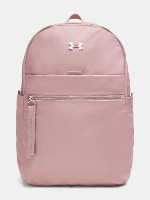 Product Details - Water-resistant UA Storm technology keeps your essentials dry - Adjustable, ergonomically-shaped shoulder straps for added comfort - Soft-lined laptop compartment—holds up to 15" MacBook Pro® or similarly sized laptop - 1 front valuables pockets with oversized zipper pull & 1 large front slip pocket - D-ring attachment point so you can clip anything with a carabiner on for easy transport - 2 side water bottle pockets - Uses a fluorine-free water repellent treatment Size & Fit - One Size Fits Most Space & Care - Style #: 1384675 - Elevated metal logo - Dimensions When Full: 11.8"W x 16.5"H x 6.3"L - Volume: 19.5 L - 100% Polyester - Imported