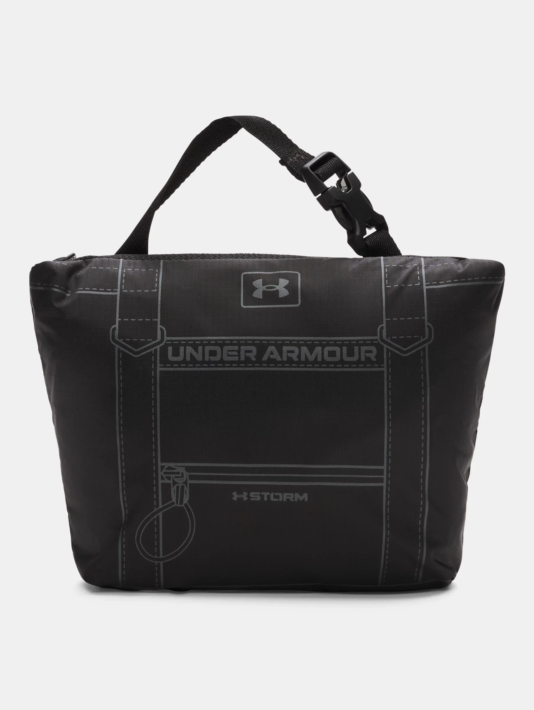 More than a tote.Water rolls right off, its packable, and has zipper pulls that double as hair ties. Product Details - Water-repellent UA Storm technology keeps your essentials dry - Packable into center back zipper pocket - Large zip-shut main compartment - Front drop-in mesh pocket & zip valuables pocket with a hair tie zipper pull - D-ring attachment points so you can clip any bag with a carabiner for easy transport - Uses a fluorine-free water repellent treatment Size & Fit - One Size Fits Most Space & Care - Style #: 6003777 - Dimensions When Full: 7"H x 12.5"W x 16.1"D - Dimensions When Packed: 6.3" x 1.2" - Volume: 24 L - 100% Nylon - Imported