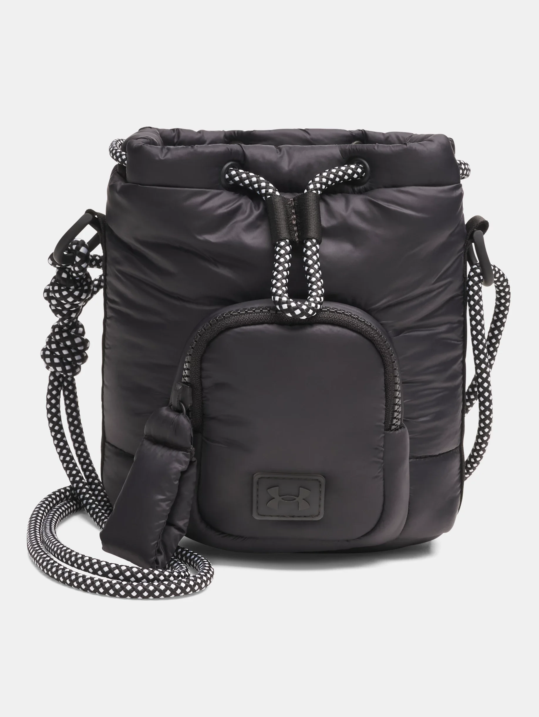 It's tough, holds all your stuff, looks great, feels good on your shoulder, and has zipper pulls that double as hair ties. Product Details - Water-resistant UA Storm technology keeps your essentials dry - Smooth, durable puffer material for an elevated look & feel - Cinch-closure main compartment with interior drop-in pocket - Adjustable rope cord shoulder strap - Front zip pocket with oversized puffer zipper pull - Uses a fluorine-free water repellent treatment Size & Fit - One Size Fits Most Space & Care - Style #: 6001576 - Dimensions When Full: 10.2"W x 8.3"H x 4.3"D - 100% Polyester - Volume: 3.5 L - Imported