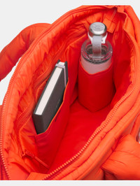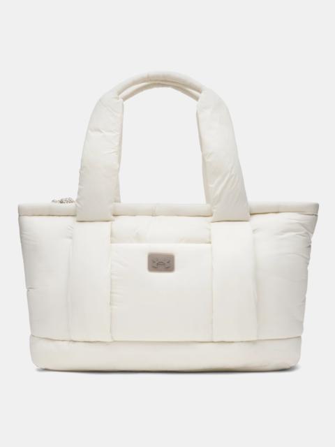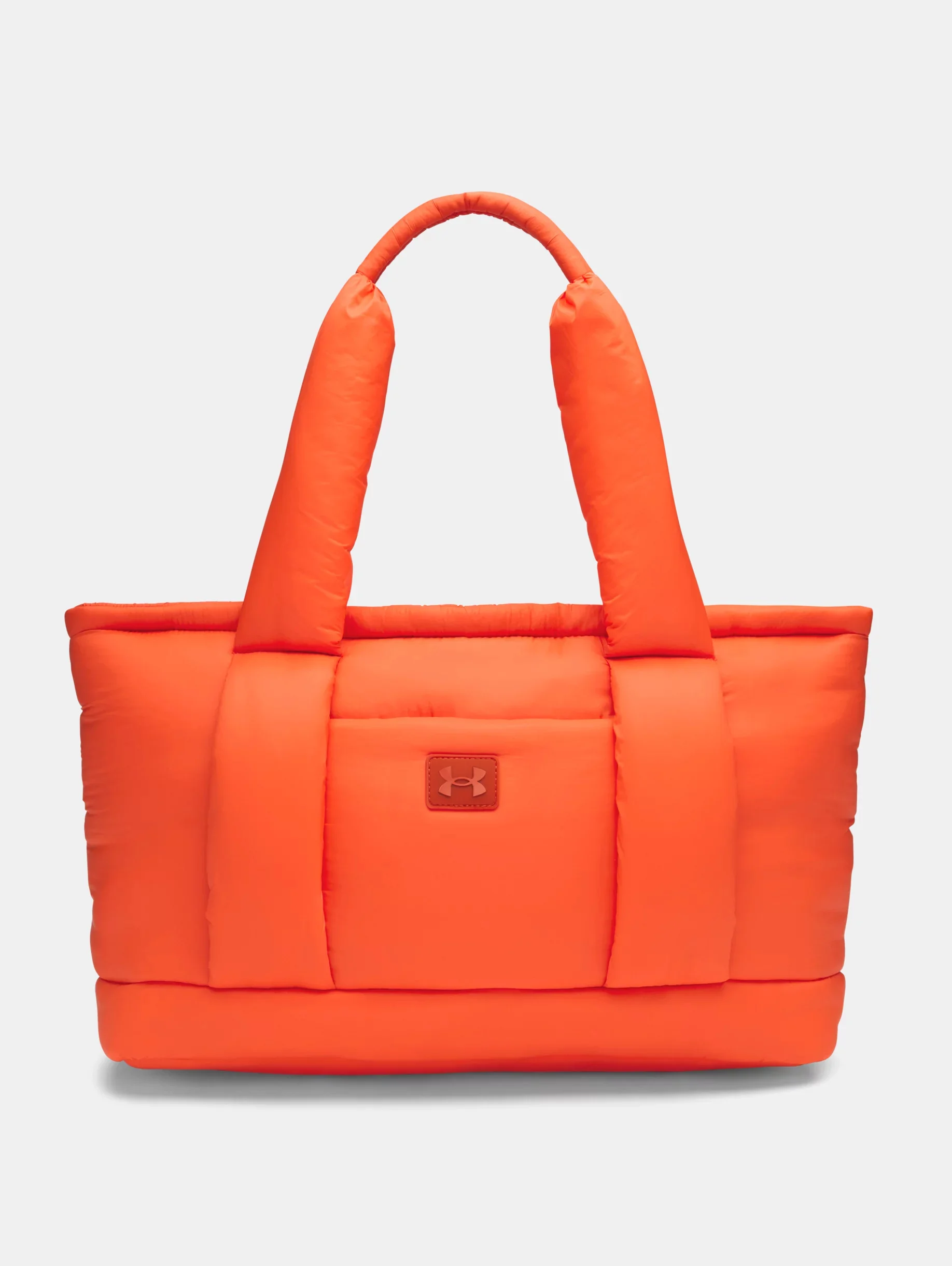 It's tough, holds all your stuff, looks great, feels good on your shoulder, and has zipper pulls that double as hair ties. Product Details - Water-resistant UA Storm technology keeps your essentials dry - Smooth, durable puffer material for an elevated look & feel - Large zippered main compartment with dual corded zipper pulls & interior drop-in organization pocket - Front drop-in pocket for easy access to essentials - Uses a fluorine-free water repellent treatment Size & Fit - One Size Fits Most Space & Care - Style #: 6000963 - Dimensions When Full: 12.6"H x 23.2"W x 6.9"D - Volume: 23 L - Imported - 100% Nylon