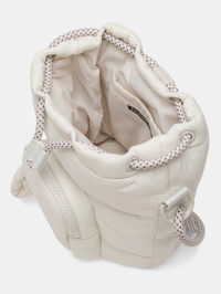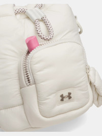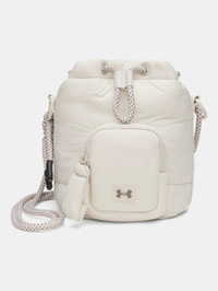 It's tough, holds all your stuff, looks great, feels good on your shoulder, and has zipper pulls that double as hair ties. Product Details - Water-resistant UA Storm technology keeps your essentials dry - Smooth, durable puffer material for an elevated look & feel - Cinch-closure main compartment with interior drop-in pocket - Adjustable rope cord shoulder strap - Front zip pocket with oversized puffer zipper pull - Uses a fluorine-free water repellent treatment Size & Fit - One Size Fits Most Space & Care - Style #: 6001576 - Dimensions When Full: 10.2"W x 8.3"H x 4.3"D - 100% Polyester - Volume: 3.5 L - Imported