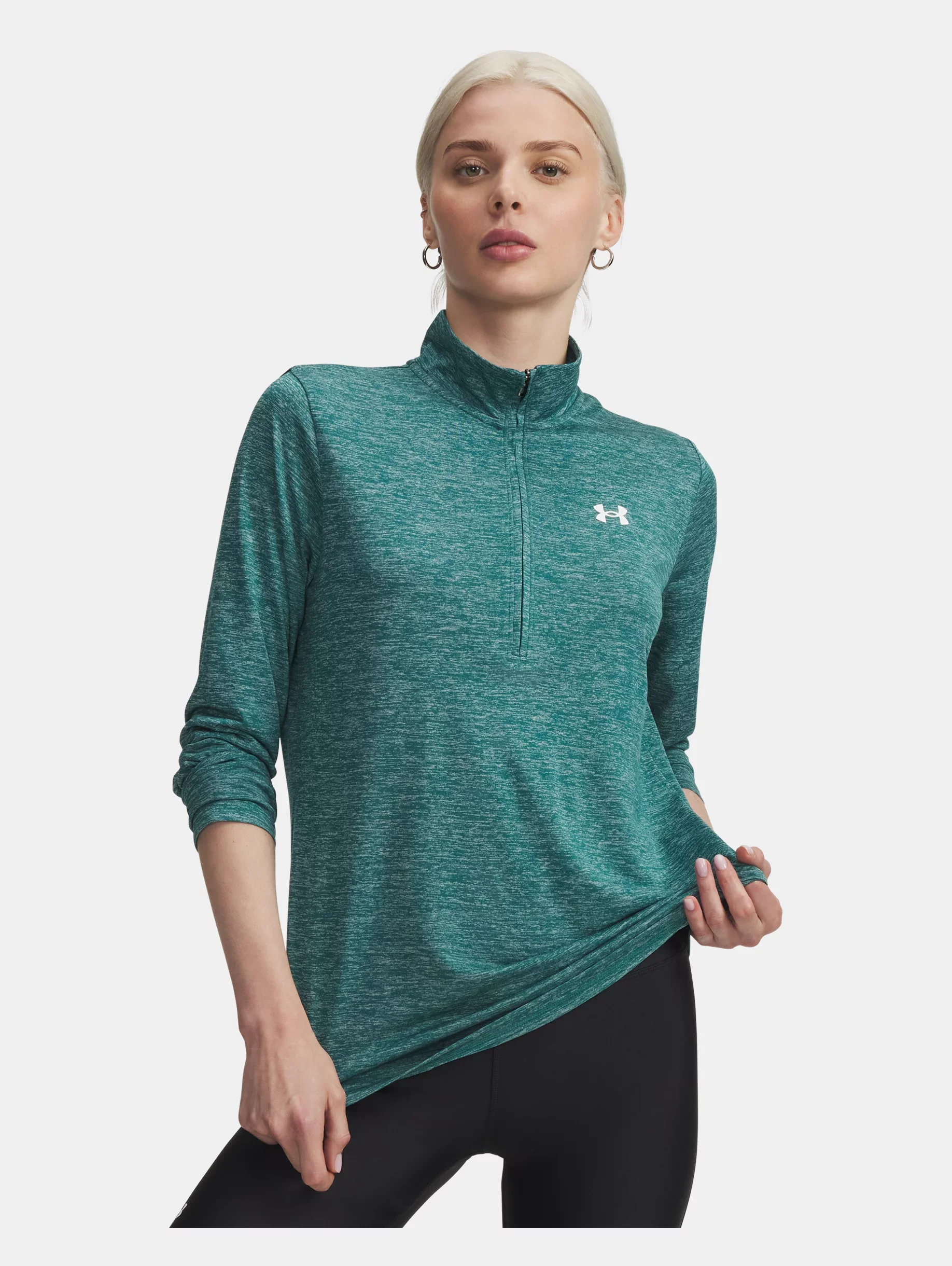 UA Tech™ is our original go-to training gear:loose, light, and it keeps you cool. It's everything you need. Product Details - UA Tech™ fabric is quick-drying, ultra-soft & has a more natural feel - Material wicks sweat & dries really fast - Generous ½ zip front makes for easy layering - Odor control technology minimizes odor - Main body fabric contains at least 30% recycled polyester, excluding trims & embellishments Size & Fit - Fuller cut for complete comfort. Space & Care - Style #: 1384225 - All-over twist effect - 100% Polyester - Imported - Wash garment inside out - Machine wash cold with like colors - Use only non-chlorine bleach when needed - Tumble dry low - Do not iron - Do not use softeners - Do not dry clean