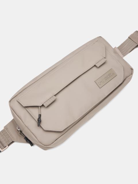 It keeps your valuables close and secure, is light, tough, and water rolls right off. Product Details - Water-resistant UA Storm technology keeps your essentials dry - Adjustable ribbed webbing strap with low-profile buckle closure for easy clipping - Soft-to-the-touch top coat on material for added durability - Zippered main compartment with internal organization pockets - Front zip & flap valuables pocket & back zip pocket that fits most phones - D-ring attachment point so you can clip anything with a carabiner on for easy transport Size & Fit - One Size Fits Most Space & Care - Style #: 1384665 - Metal wordmark plaque branding - Dimensions When Full: 2"W x 5.7"H x 12"L - Volume: 3.7 L - 63% Polyester/37% Polyurethane - Imported